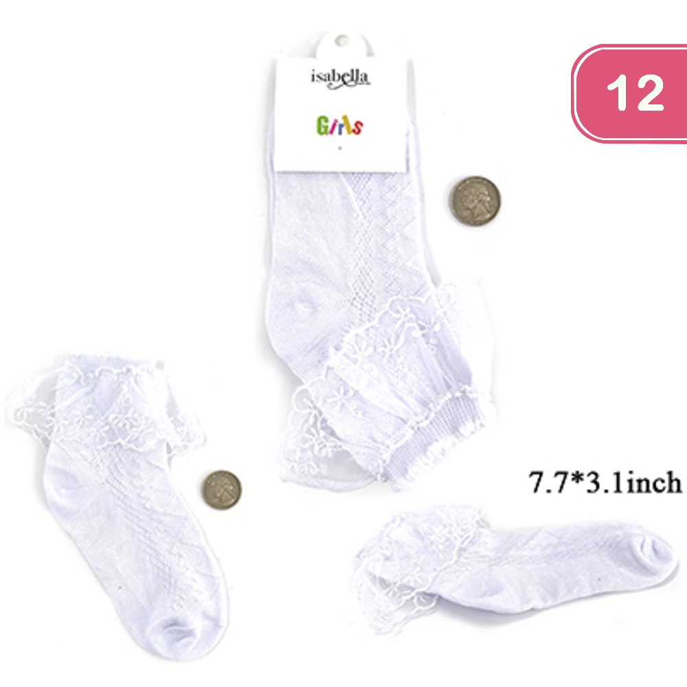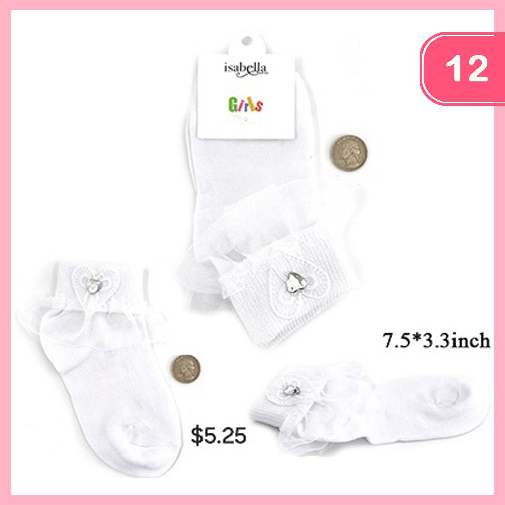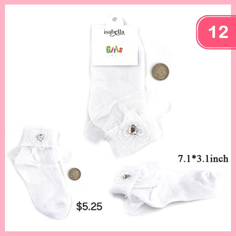 GIRLS HEART LACE ANKLE SOCKS (12 UNITS)