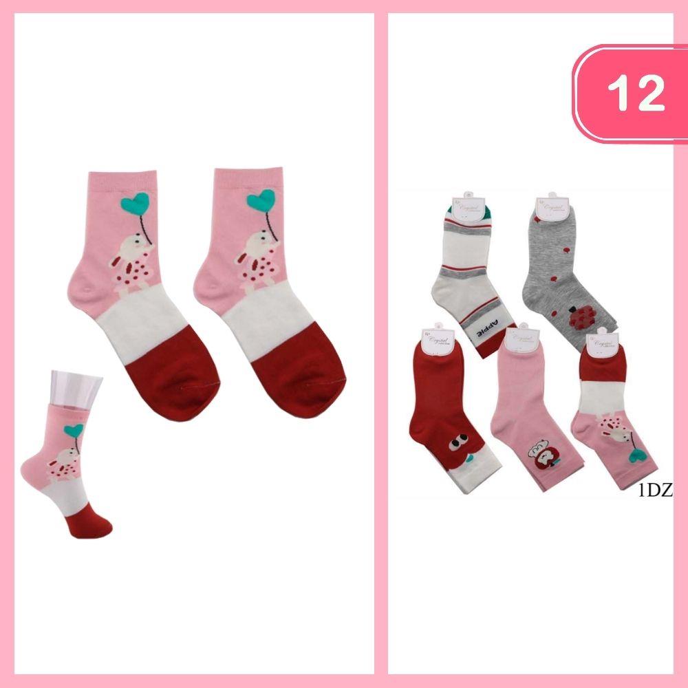 CUTE TEDDY BEAR APPLE CHERRY PRINT ANKLE SOCKS (12 UNITS)