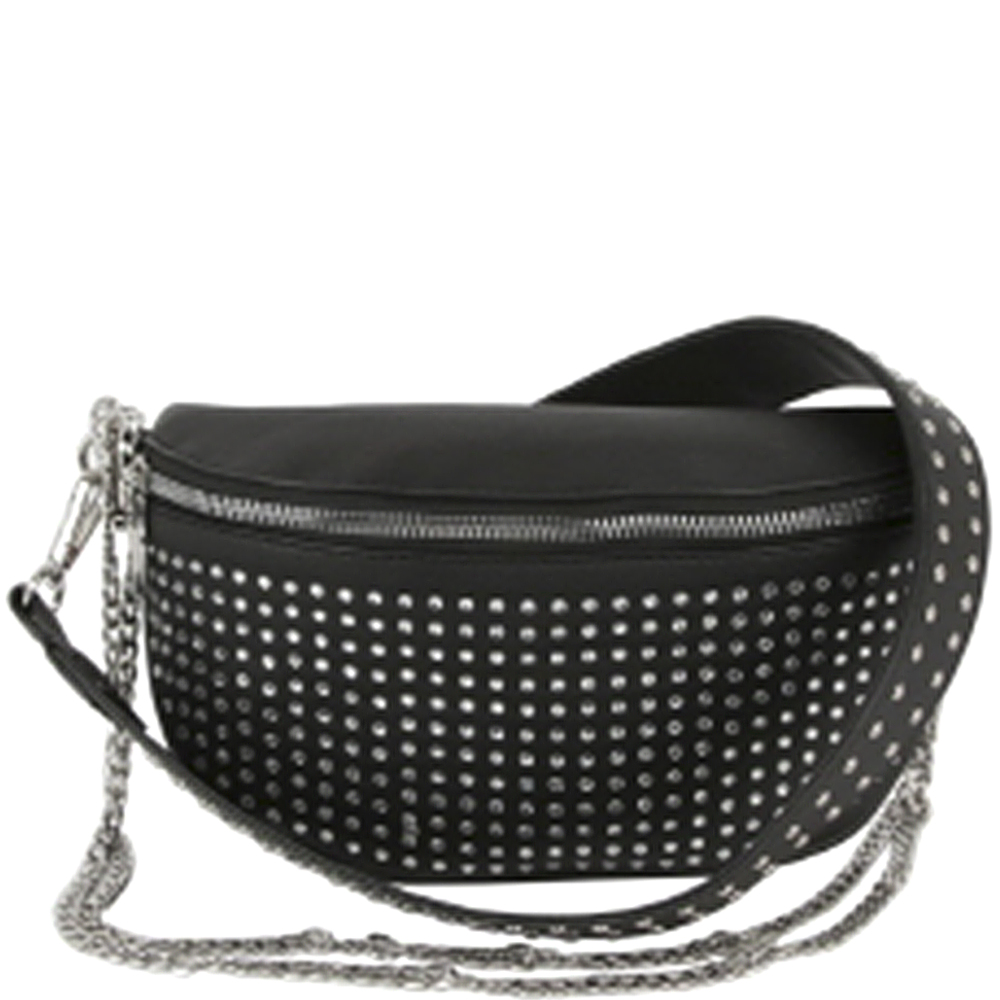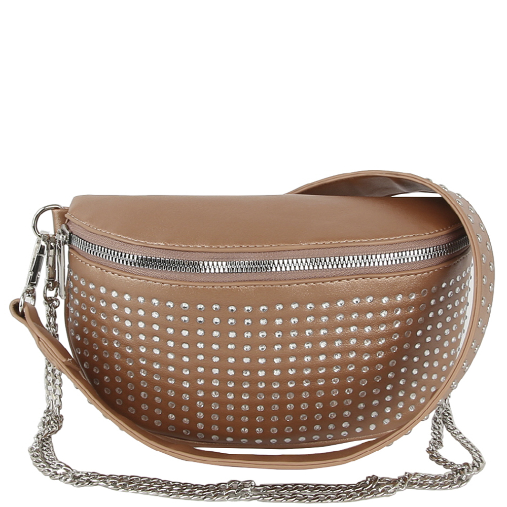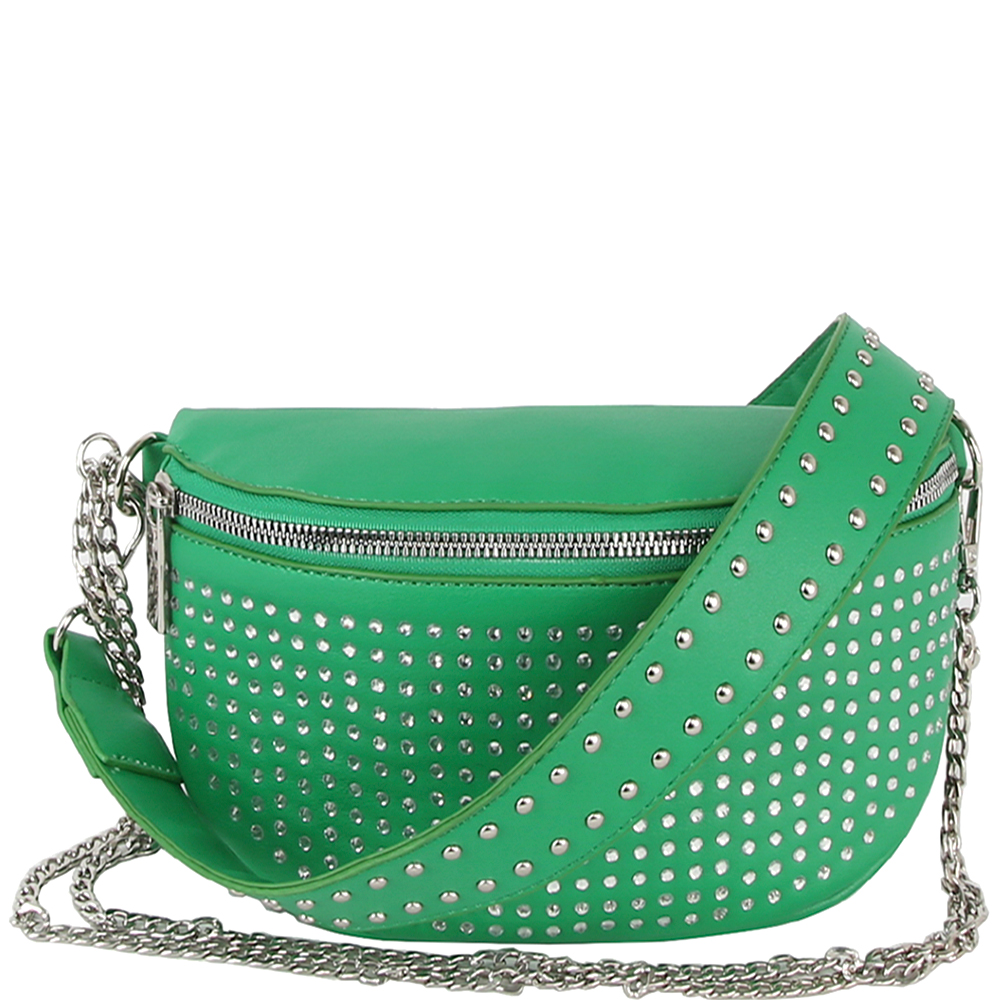 STUDDED ZIPPER CHAIN LINK CROSSBODY BAG