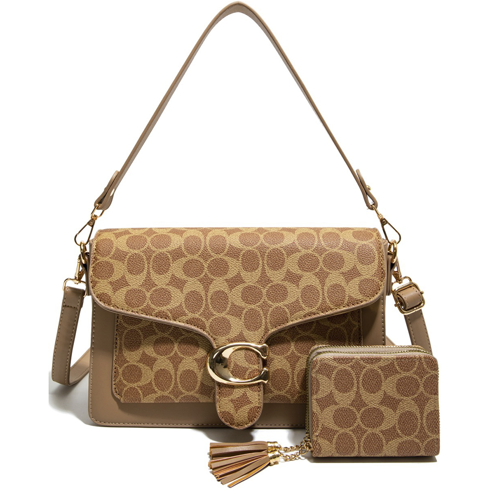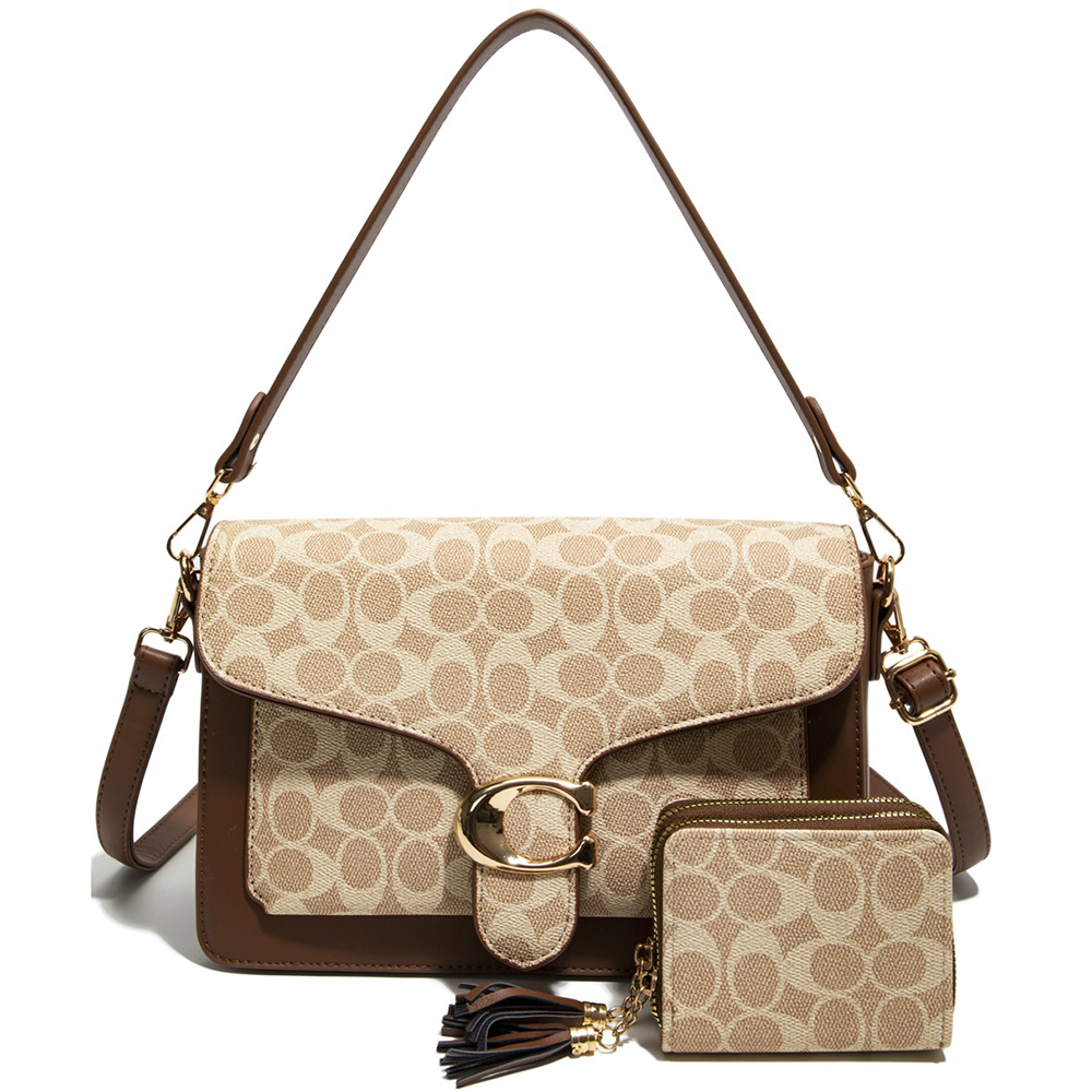 2IN1 OVAL PRINTED SHOULDER BAG W WALLET SET