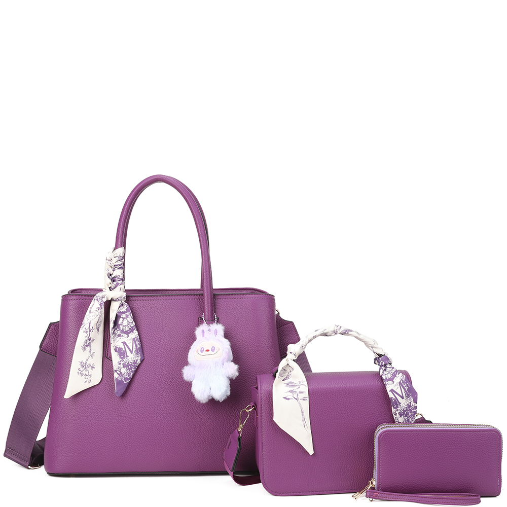 3NI1 TEXTURED SCARF HANDLE SATCHEL W MINI BAG AND WALLET SET