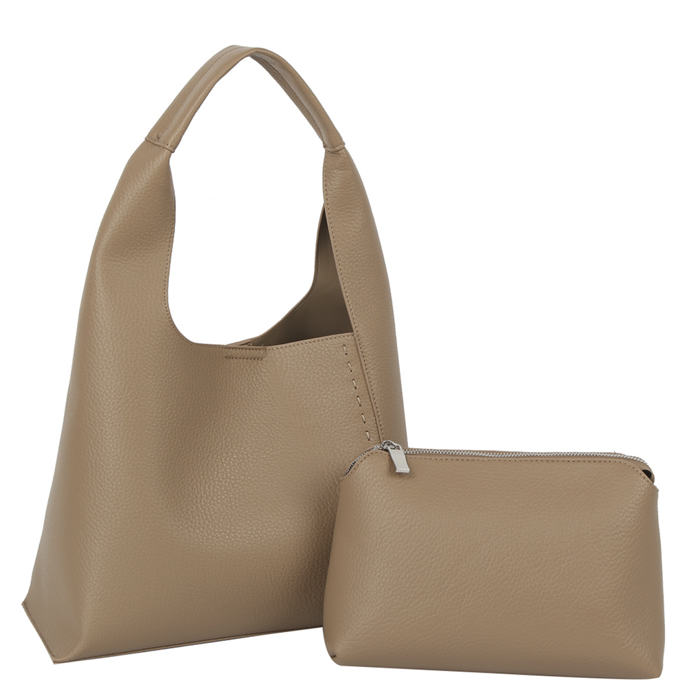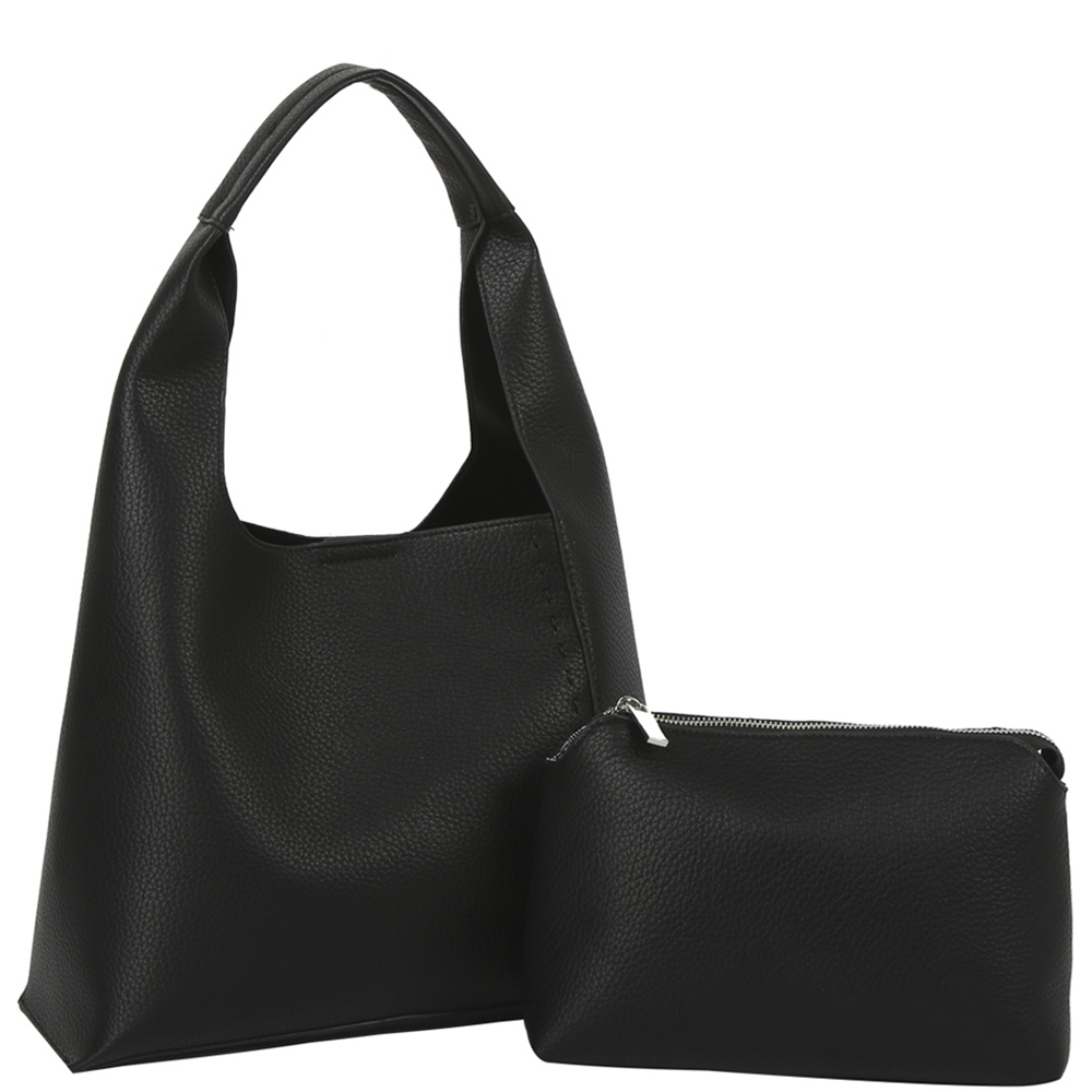 2IN1 PLAIN TEXTURED SHOULDER BAG W POUCH SET