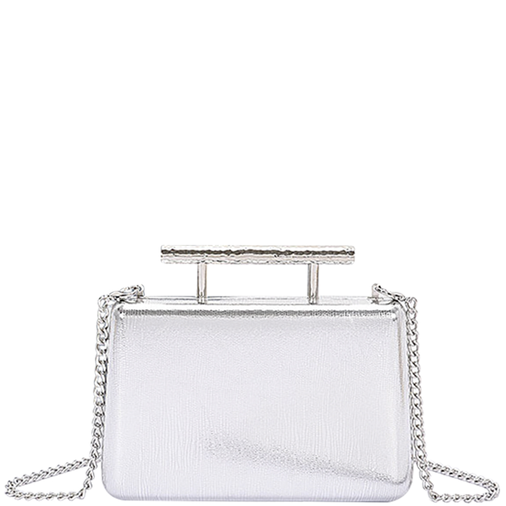 METAL HANDLE TOP CASE CLUTCH BAG