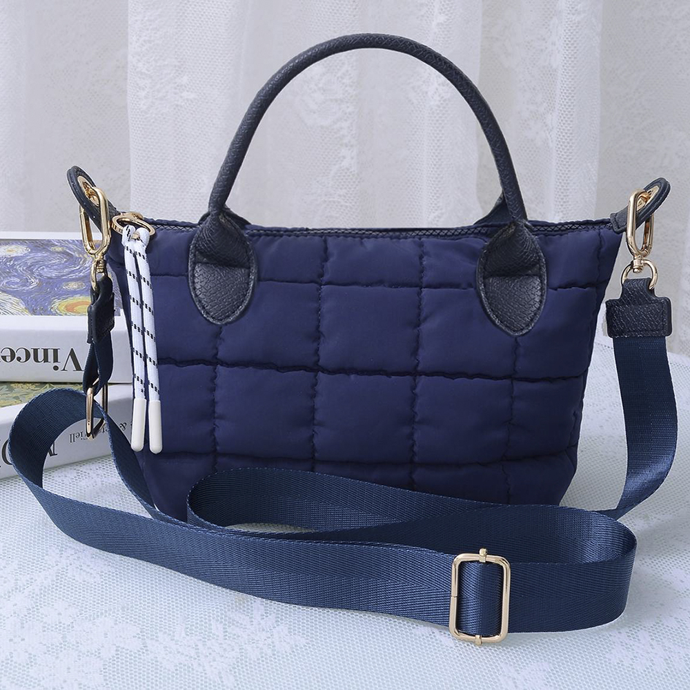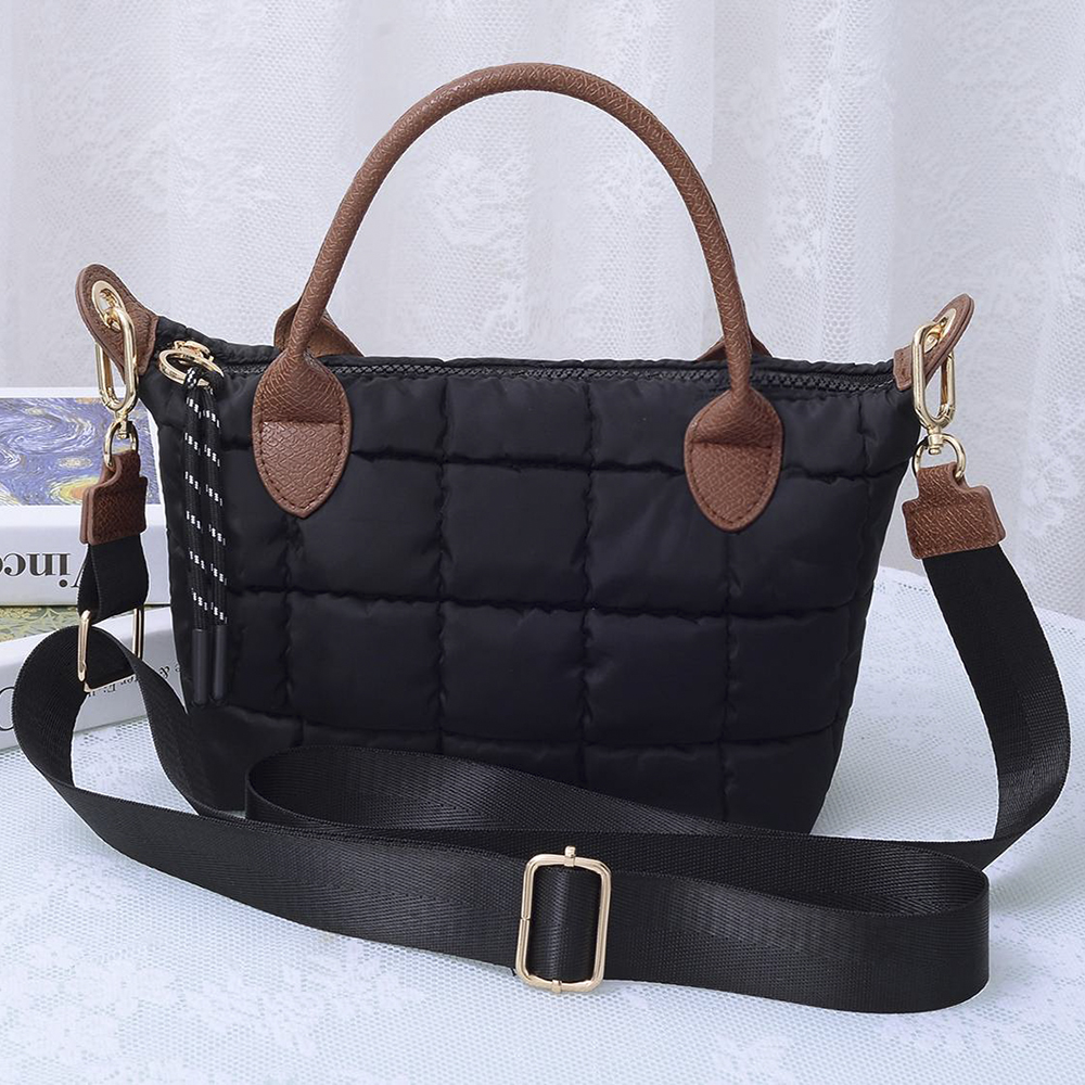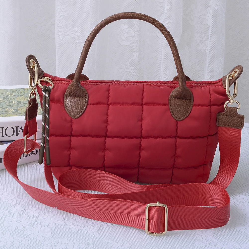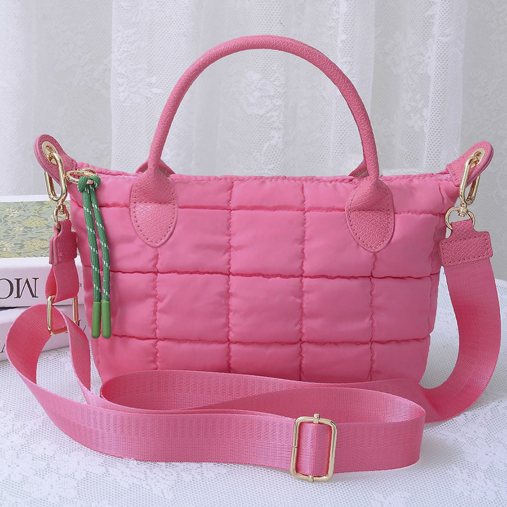 QUILTED CUSHION DESIGN HANDLE SATCHEL BAG