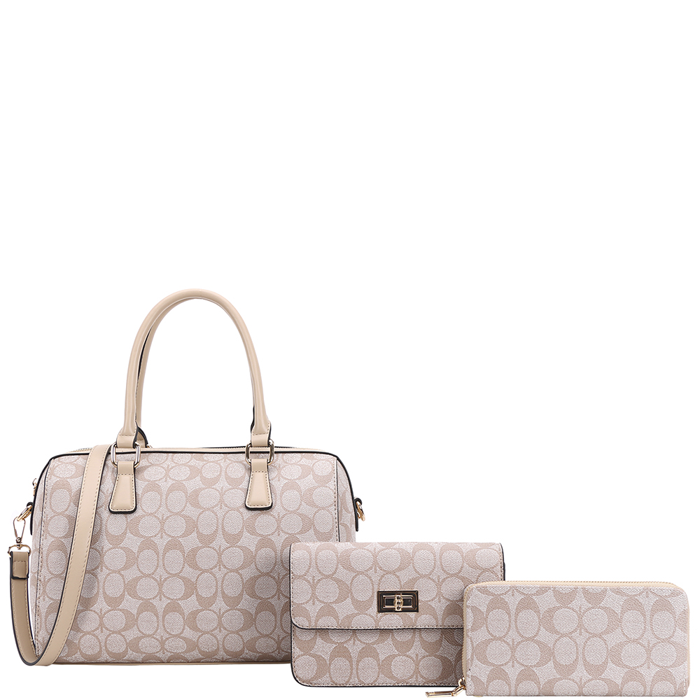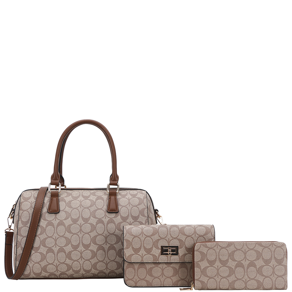 3IN1 OVAL PRINT SATCHEL W CROSSBODY AND WALLET SET
