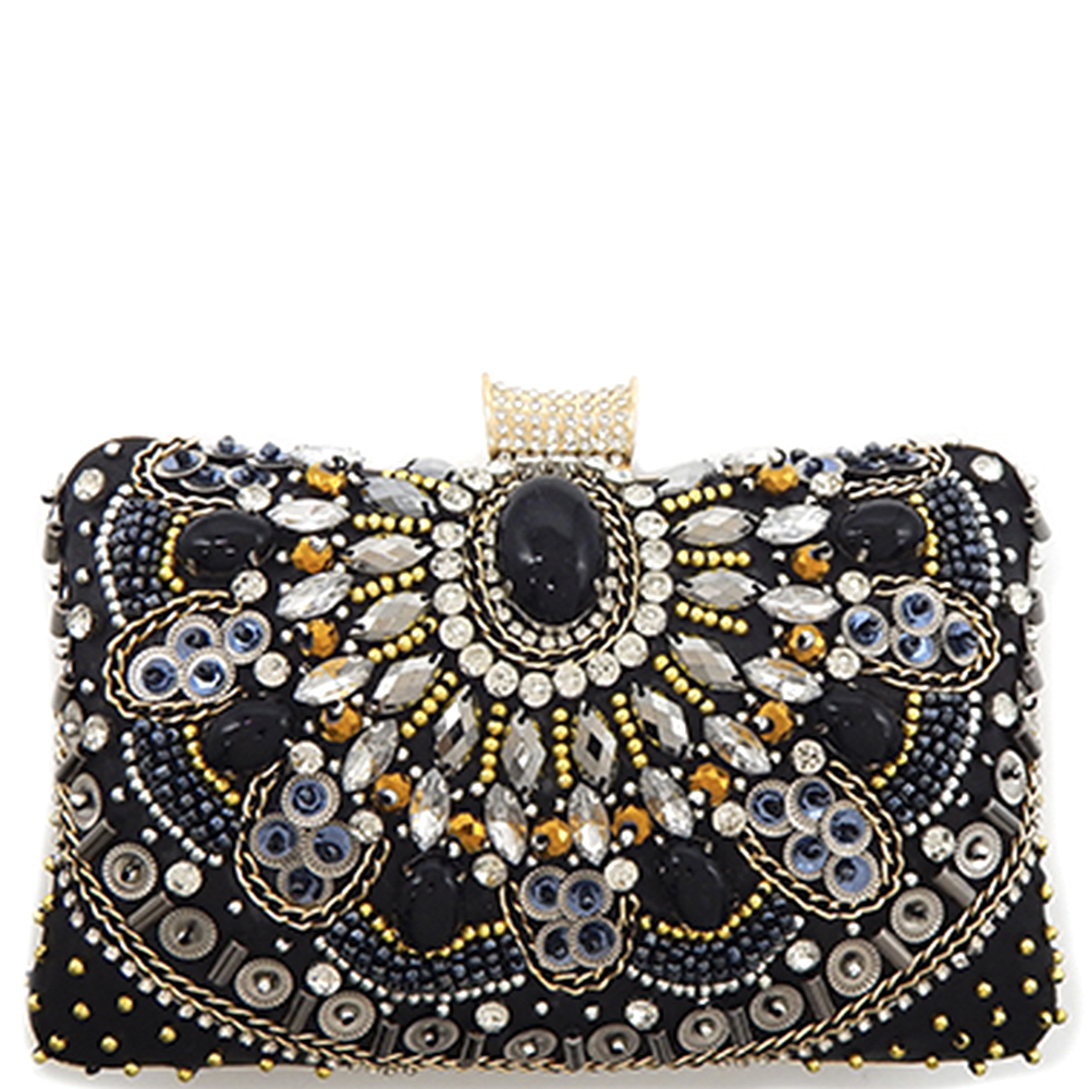 MULTI RHINESTONE BEADED EMBELLISHED EVENING CLUTCH BAG