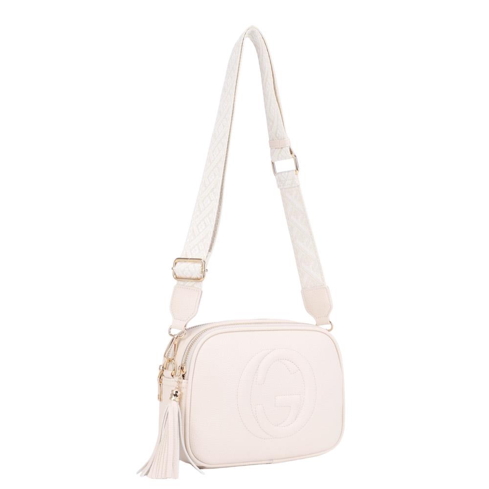 (Online Only) Smooth zipper crossbody bag w guitar strap