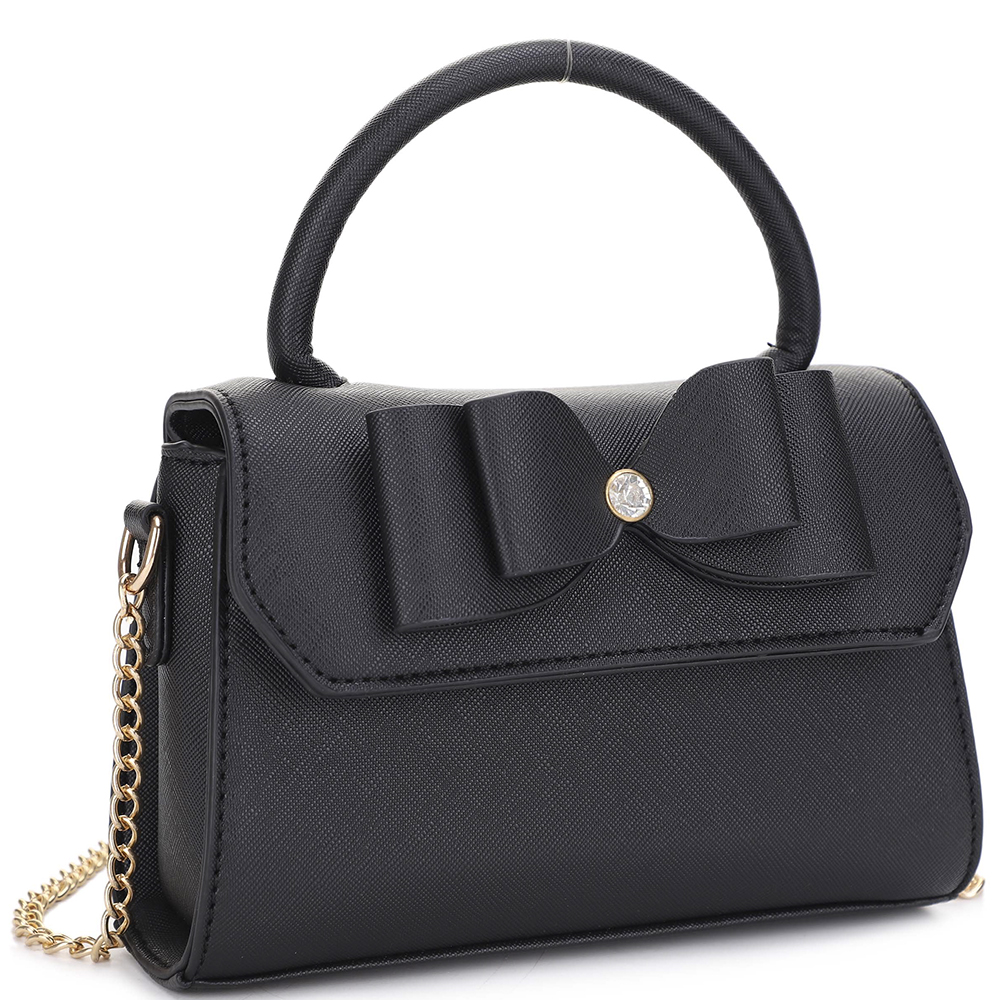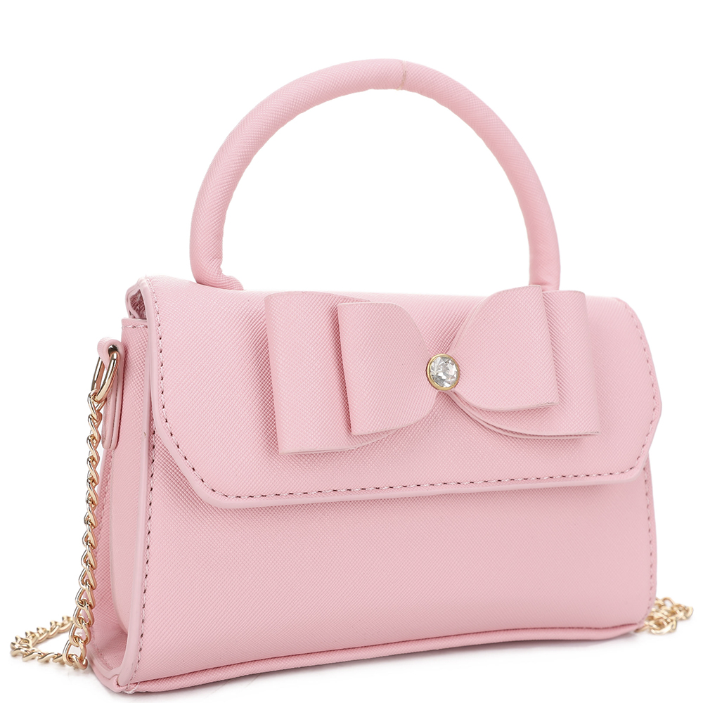 ENAMEL BOW EMBELLISHED TOP HANDLE MINI CROSSBODY BAG