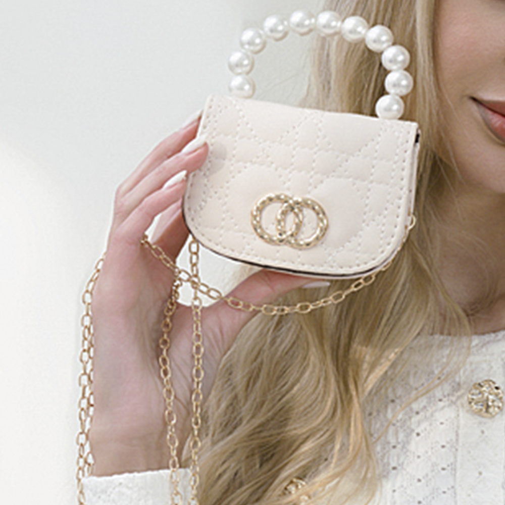 QUILTED CIRCLE PEARL HANDLE MINI CROSSBODY BAG