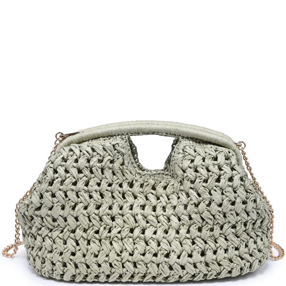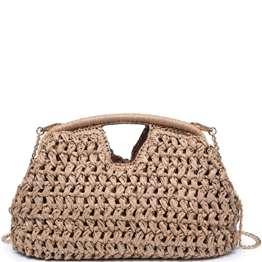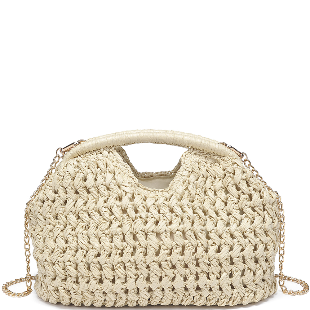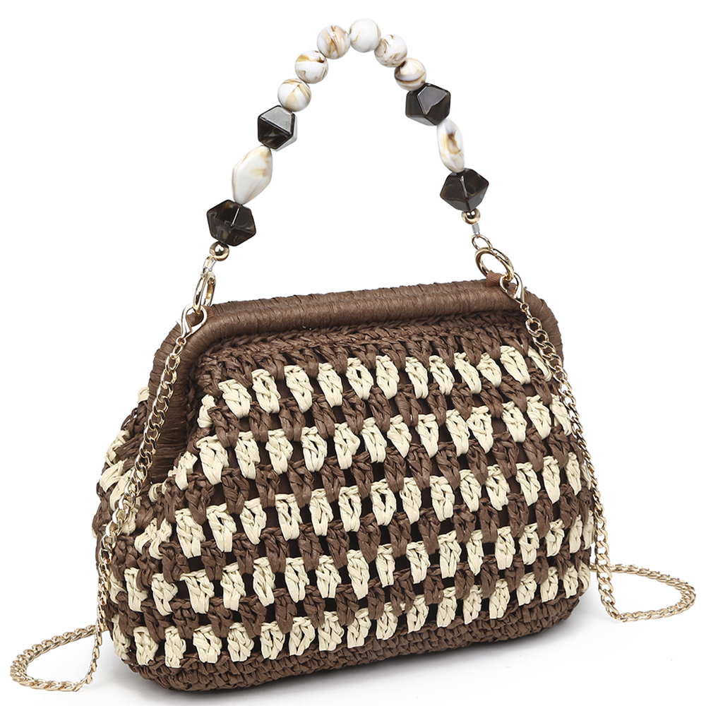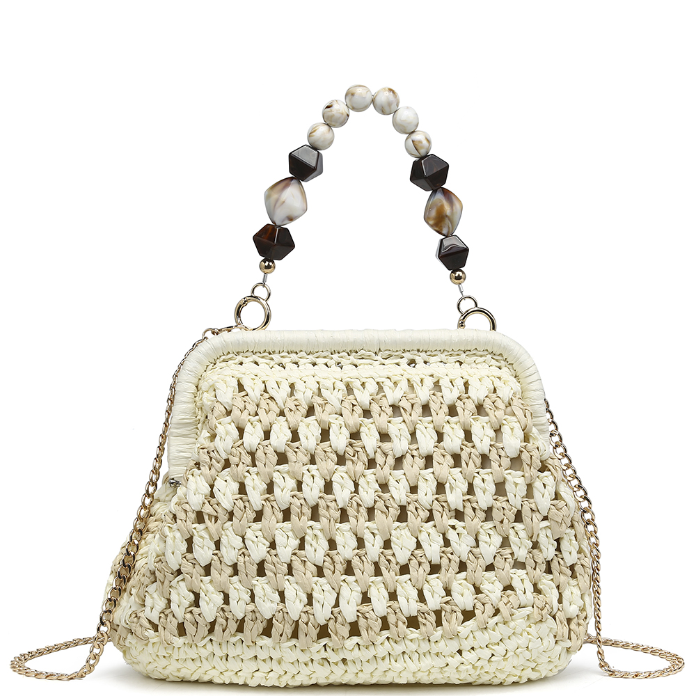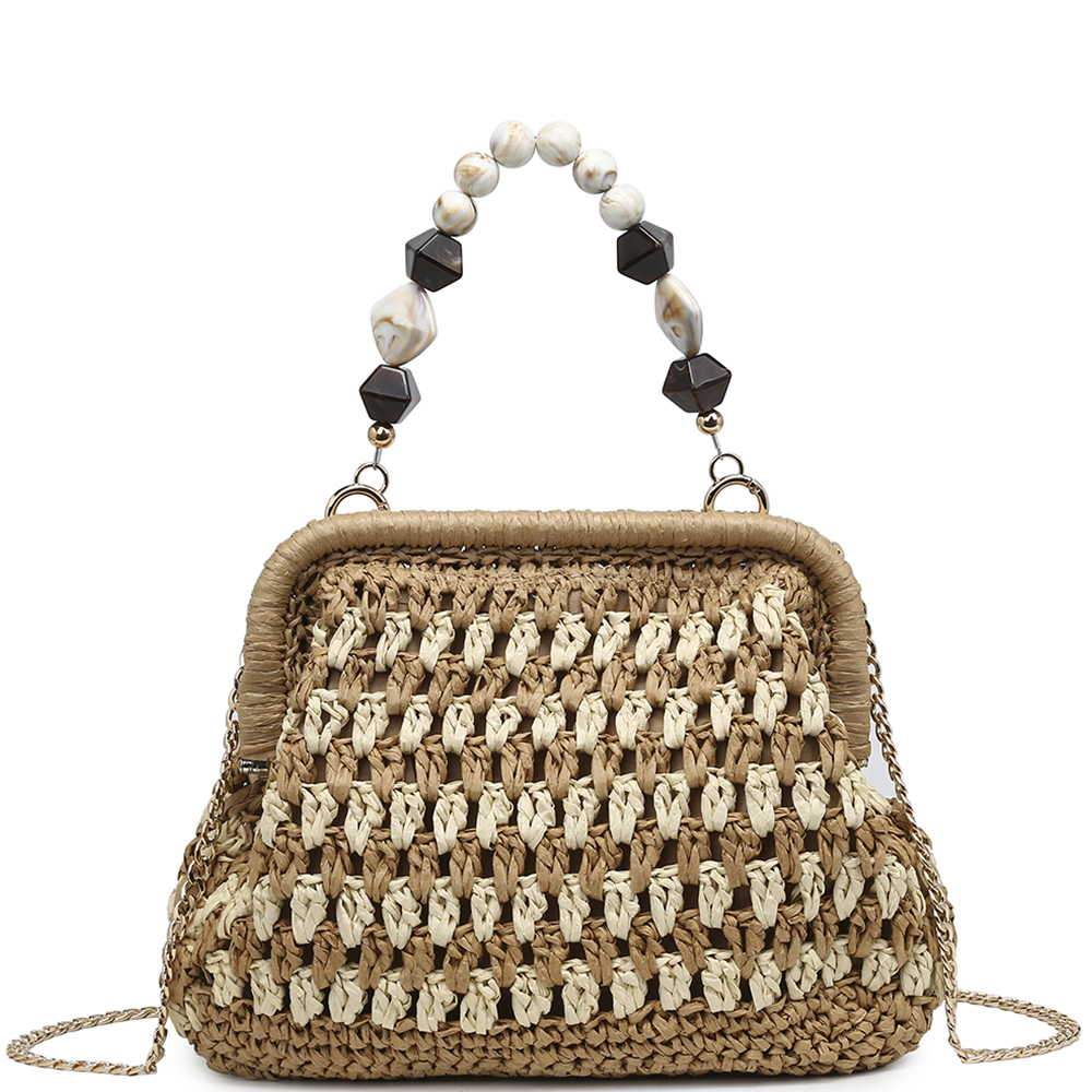 MODERN WOVEN STRAW BEAD HANDLE CROSSBODY BAG