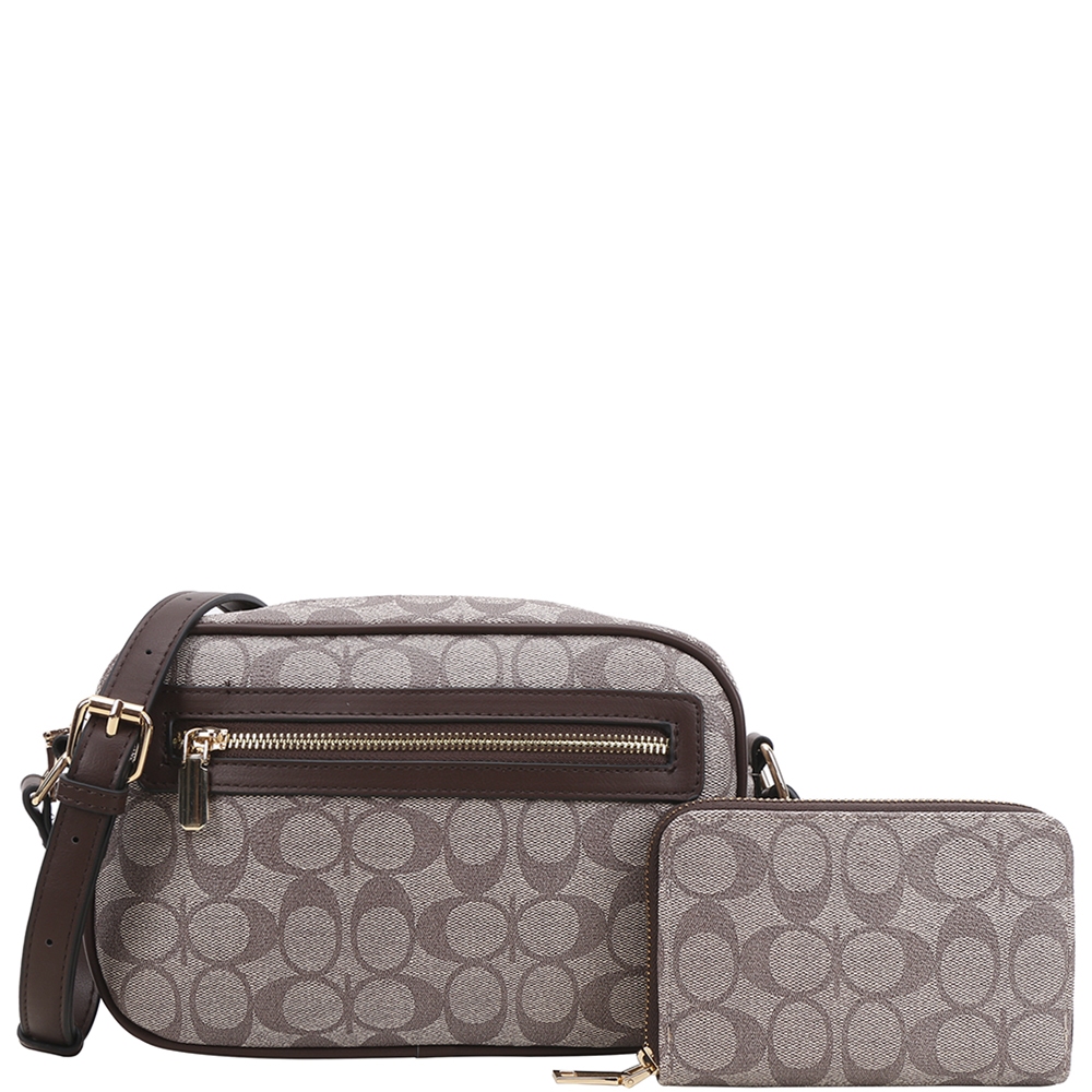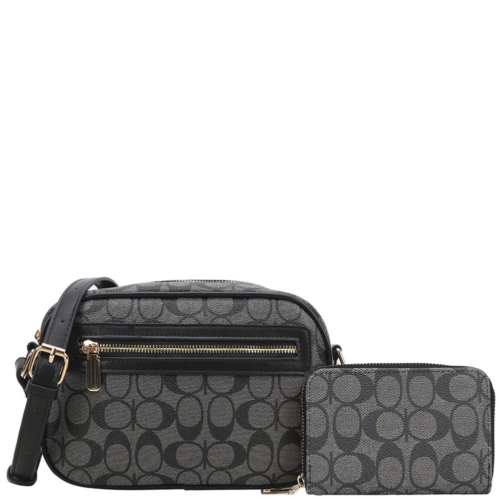 2IN1 OVAL DESIGN ZIPPER CROSSBODY W WALLET SET