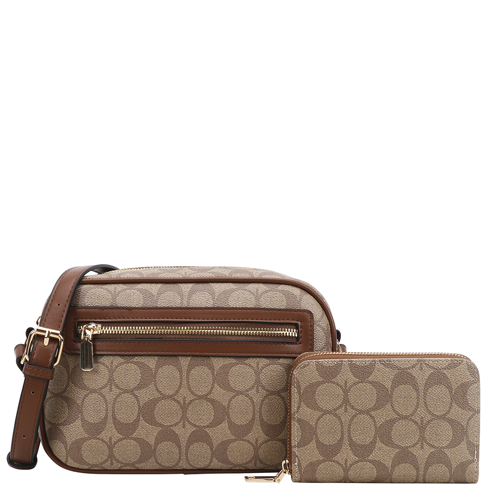 2IN1 OVAL ZIPPER CROSSBODY BAG W WALLET SET