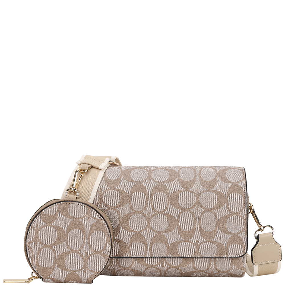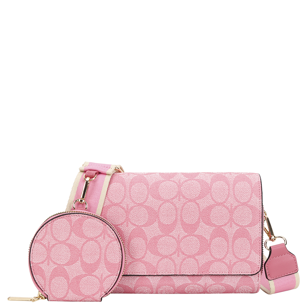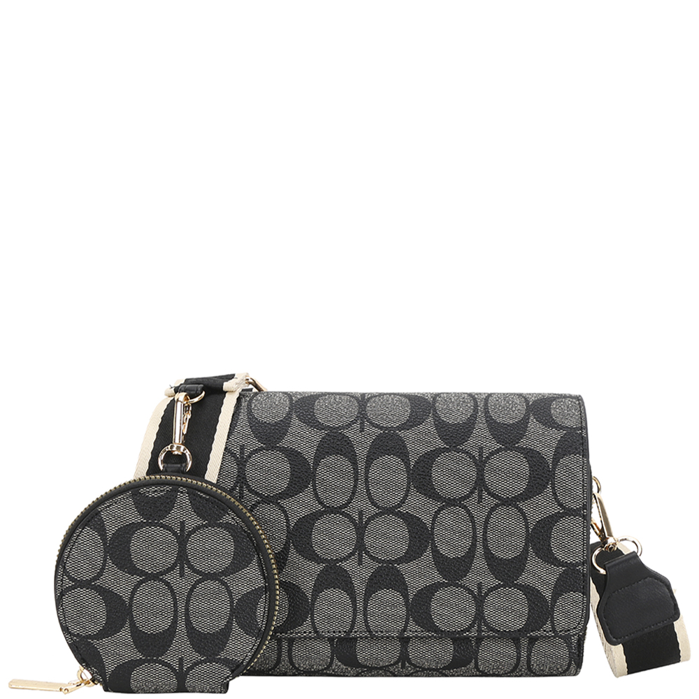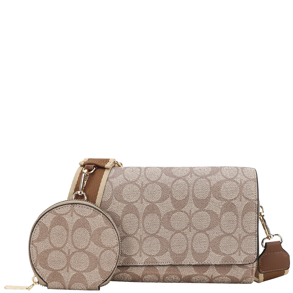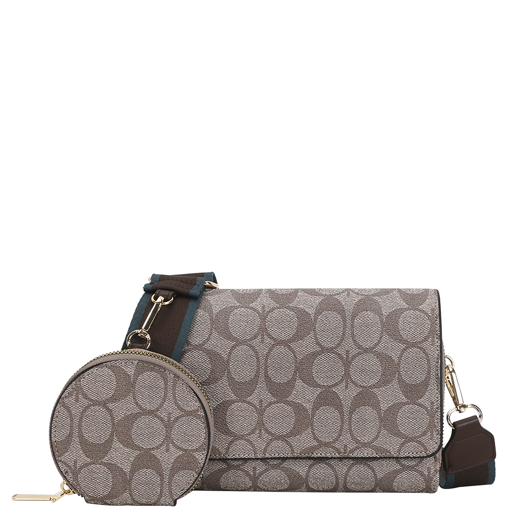 2IN1 OVAL PATTERN PRINT CROSSBODY BAG W COIN POUCH SET
