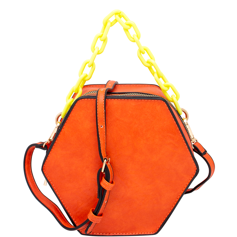 SMOOTH HEXAGON SHAPE ACRYLIC HANDLE CROSSBODY BAG