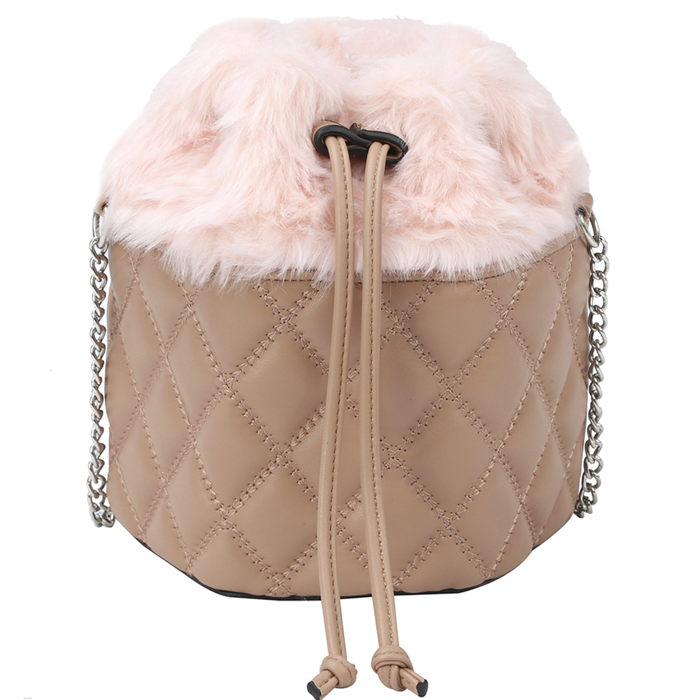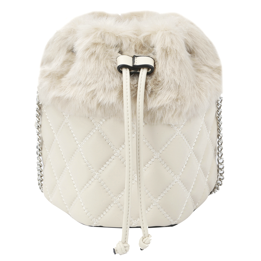 FUR QUILTED DRAWSTRING CROSSBODY BAG