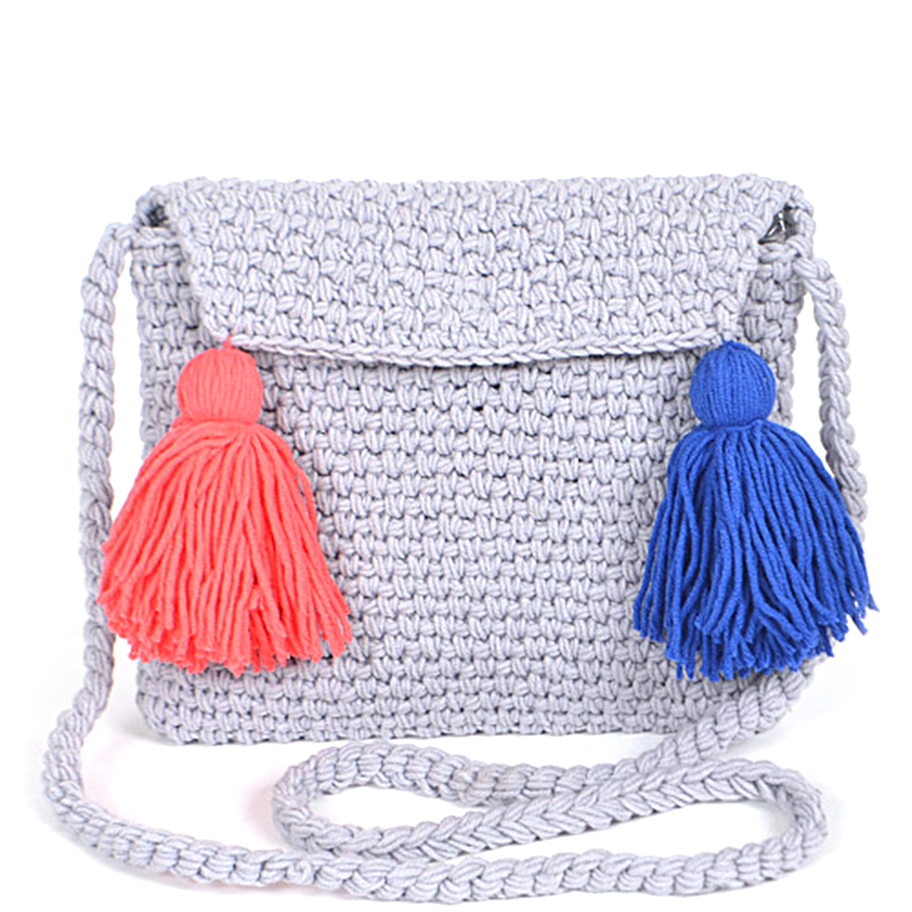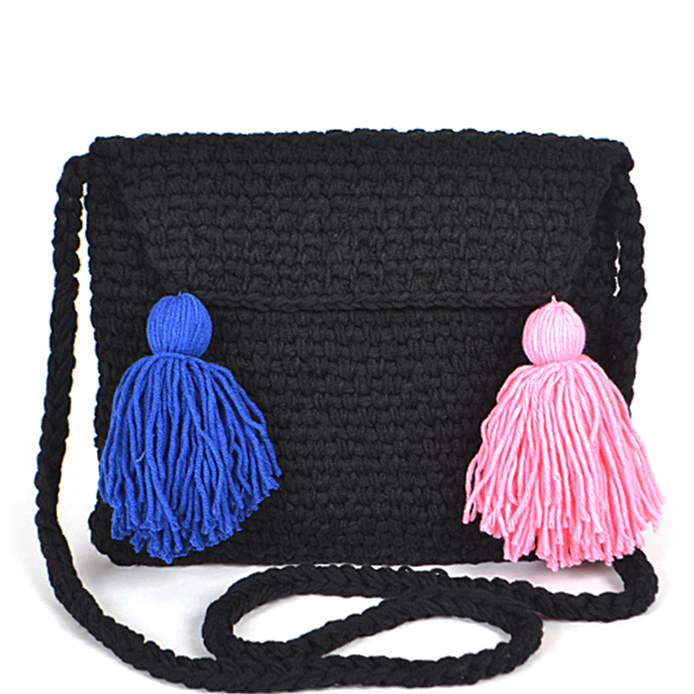 TWO TONE TASSEL WOVEN STRAW CROSSBODY BAG