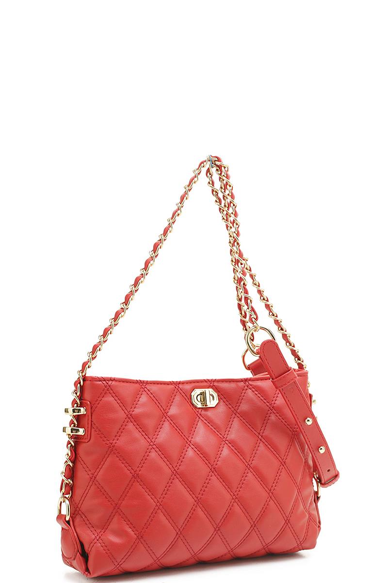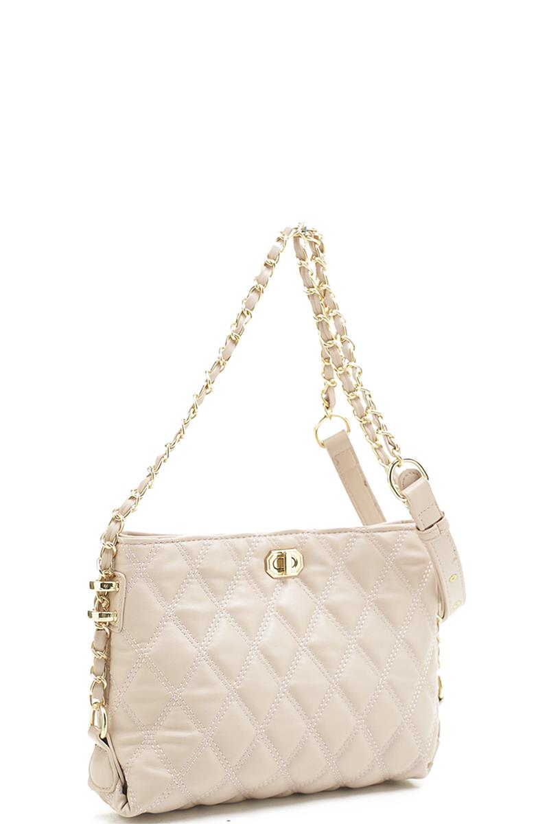 QUILT PATTERN TWIST LOCK SHOULDER CROSSBODY BAG