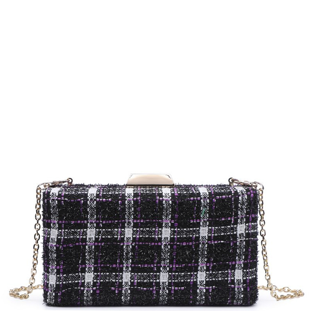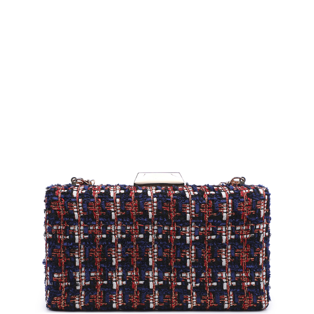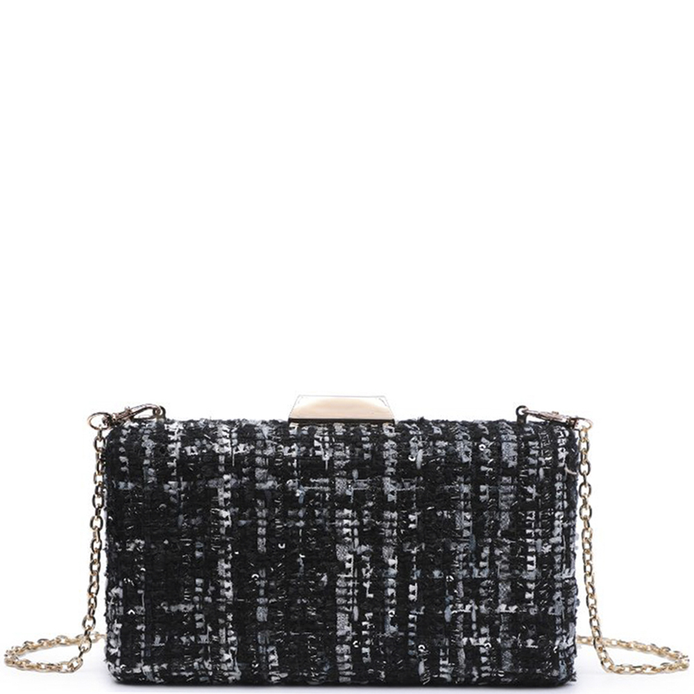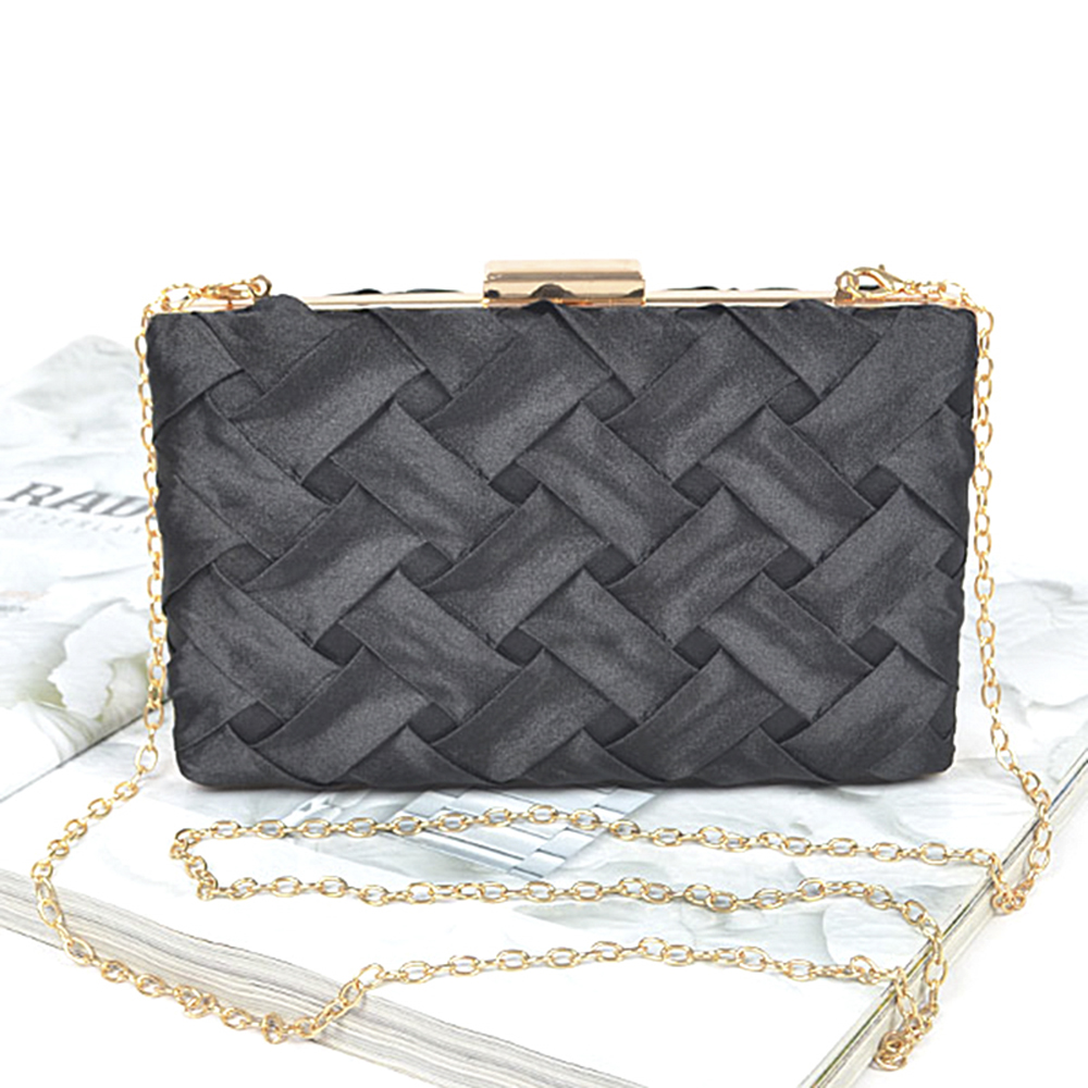 CROSS HATCHED CHAIN CLUTCH BAG
