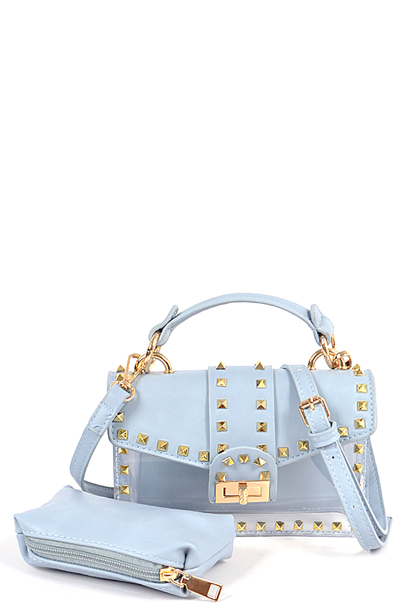 2IN1 STUDDED SEE THROUGH CLUTCH