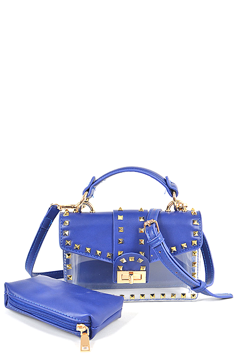 2IN1 TRANSPARENT CROSSBODY W RHINESTONE CLUTCH BAG SET