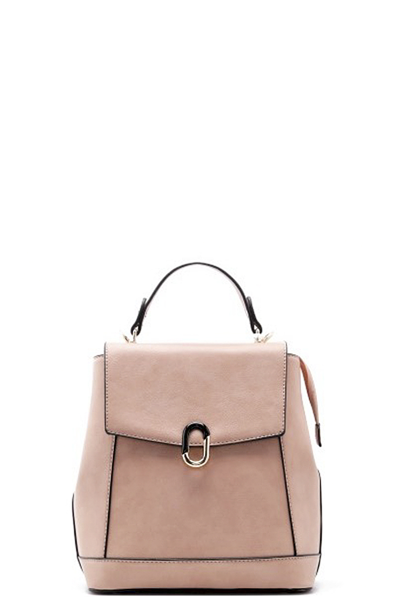 FASHION PLAIN OVAL METAL DESIGN HANDLE BACKPACK CROSSBODY BAG