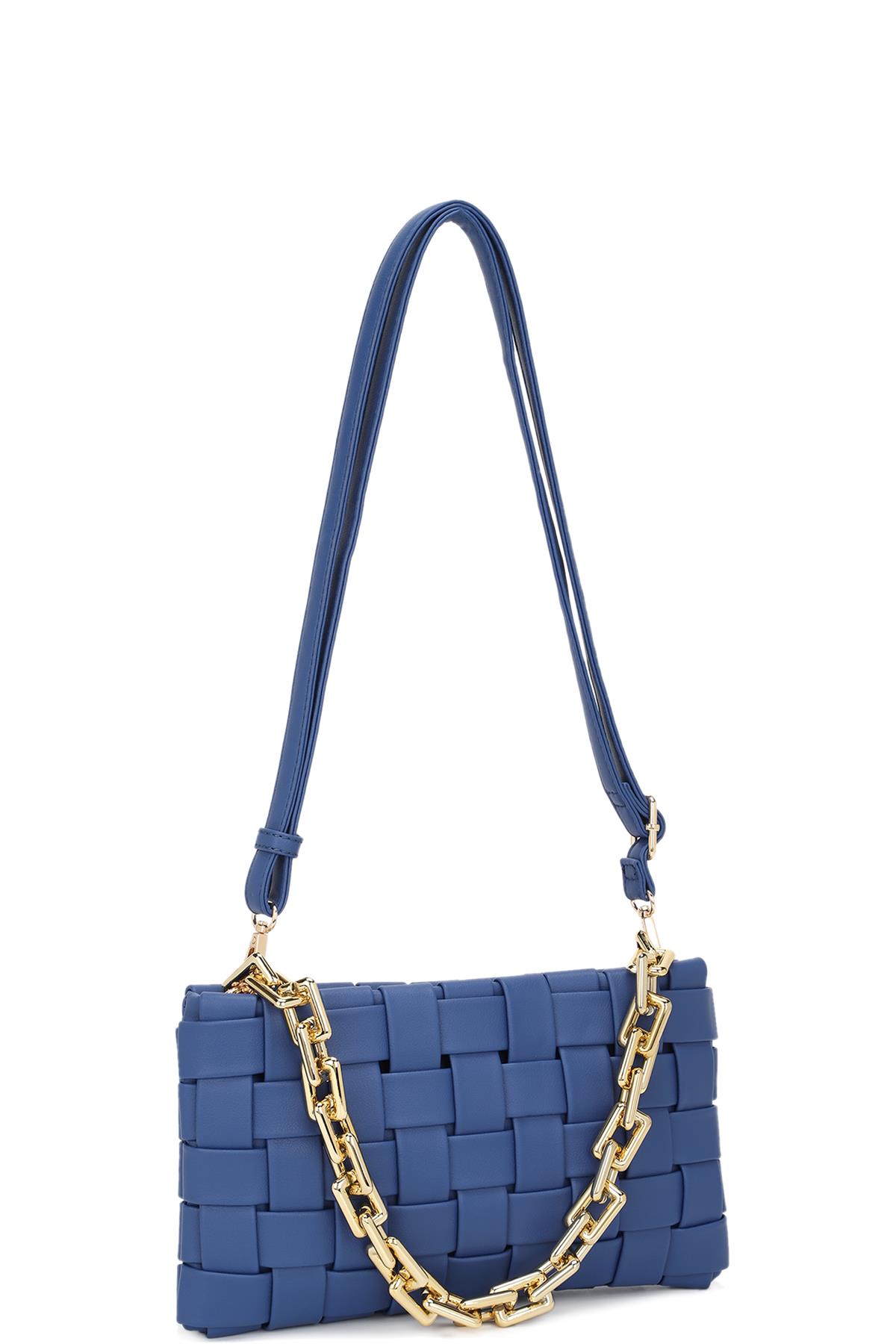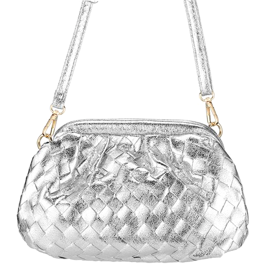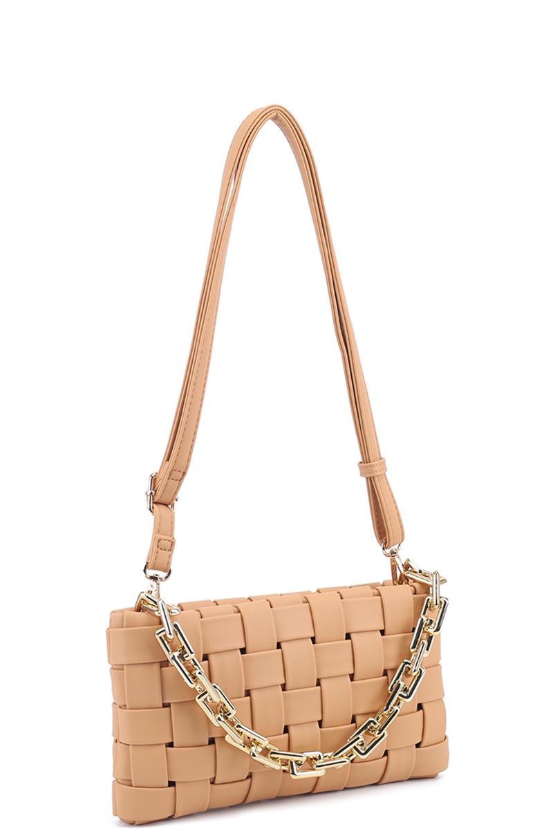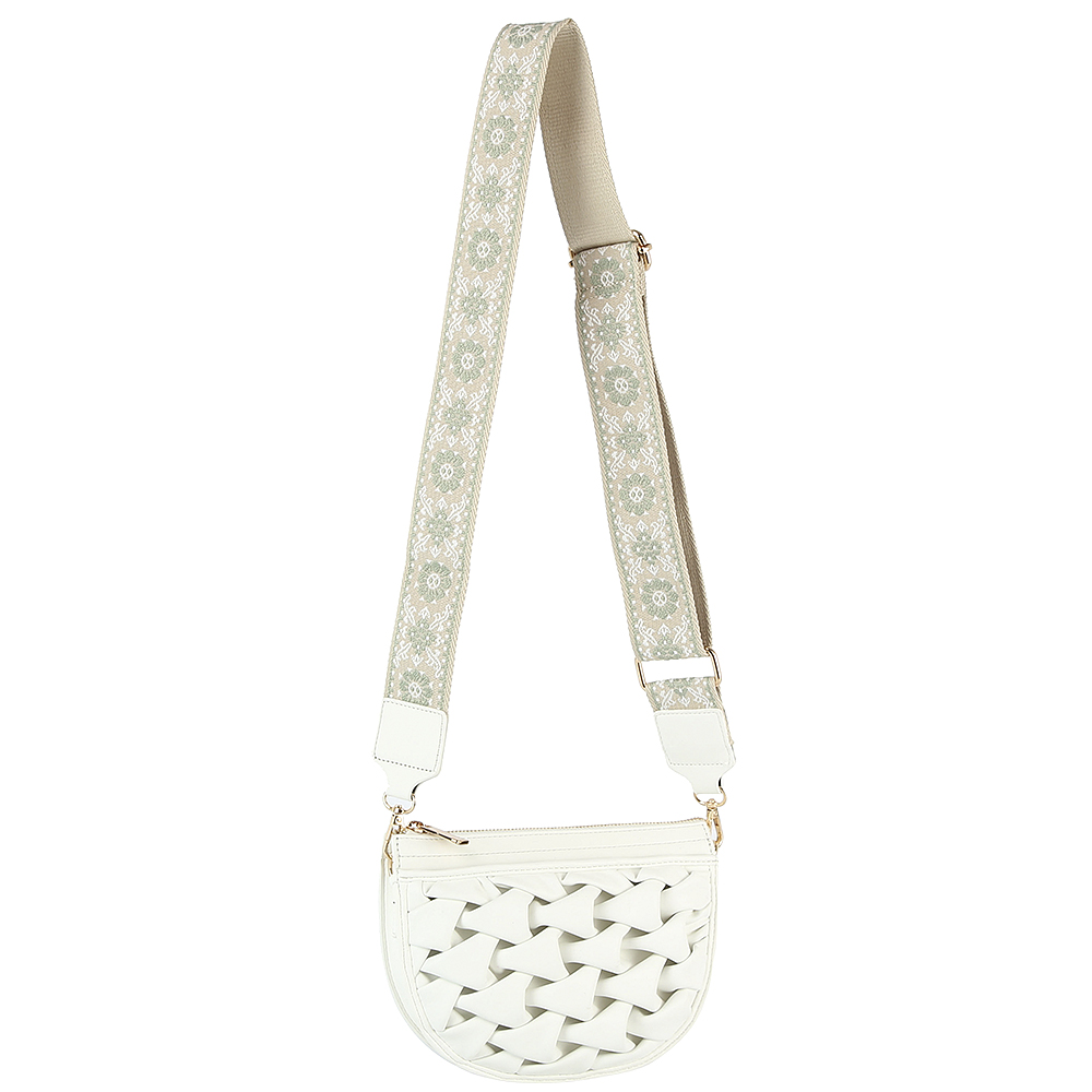 LEATHER FAUX WOVEN CROSSBODY BAG