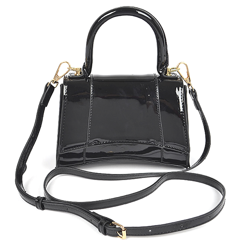 PLAIN SLANTED SHAPE ZIPPER HANDLE CROSSBODY BAG