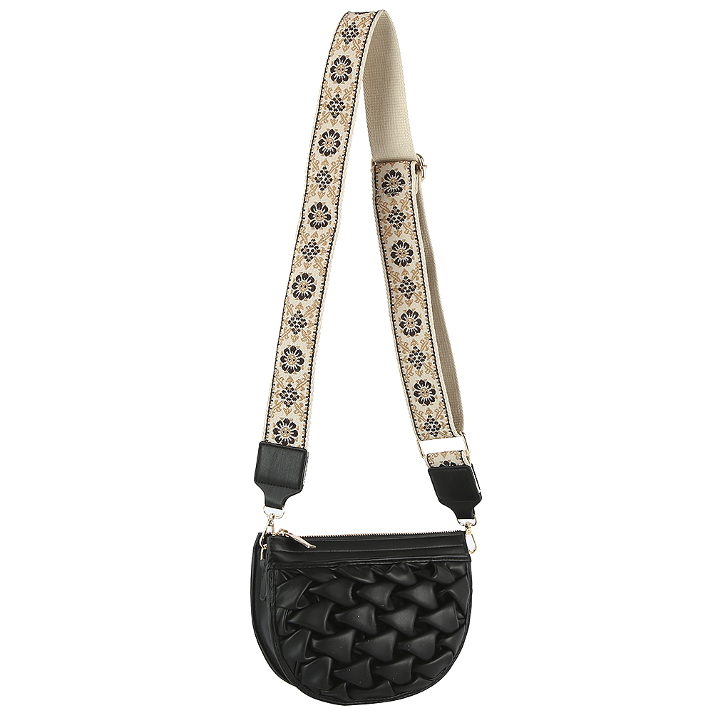PATTERN DESIGN ZIPPER CROSSBODY BAG W GUITAR STRAP