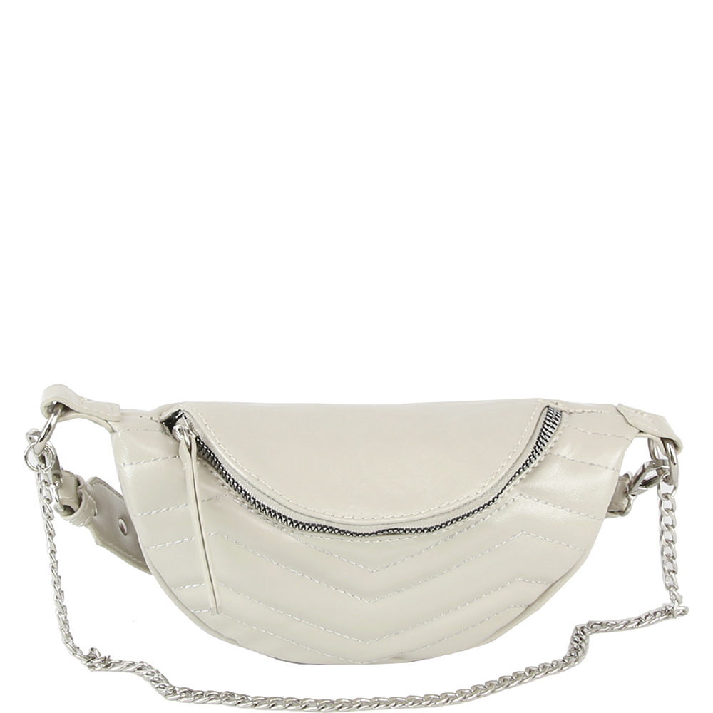 ROUND QUILT CHAIN HANDLE ZIPPER CROSSBODY BAG