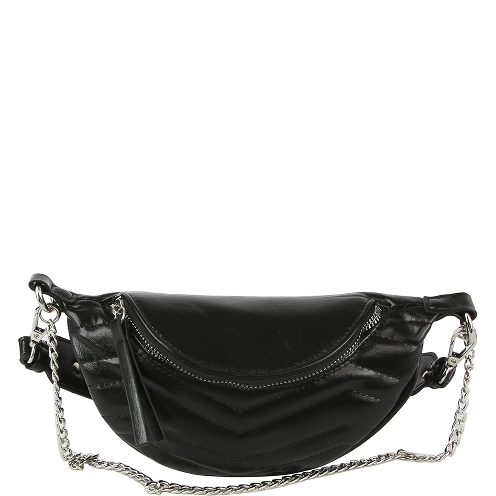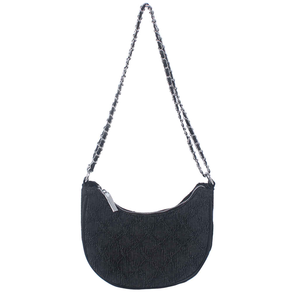 FASHION QUILT DESIGN ZIPPER CHAIN LINK CROSSBODY BAG