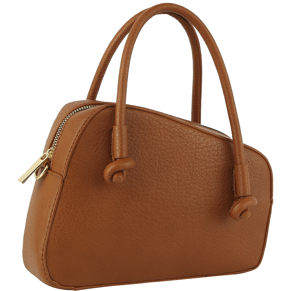 FAUX LEATHER HANDBAG RECTANGLE SCULPTED HANDLE