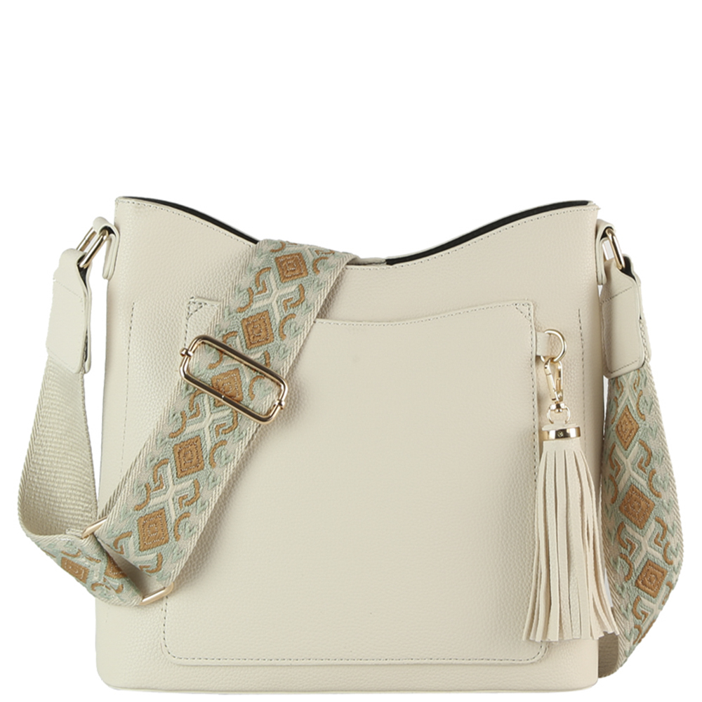 SMOOTH ZIPPER CROSSBODY W DESIGN STRAP