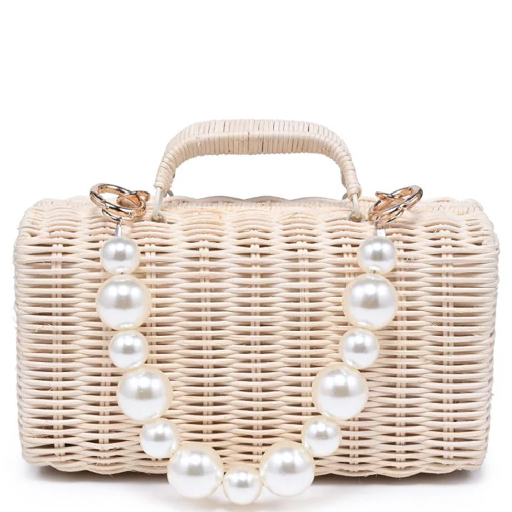 PEARL STUDDED WOVEN STRAW MAXIE EVENING BAG