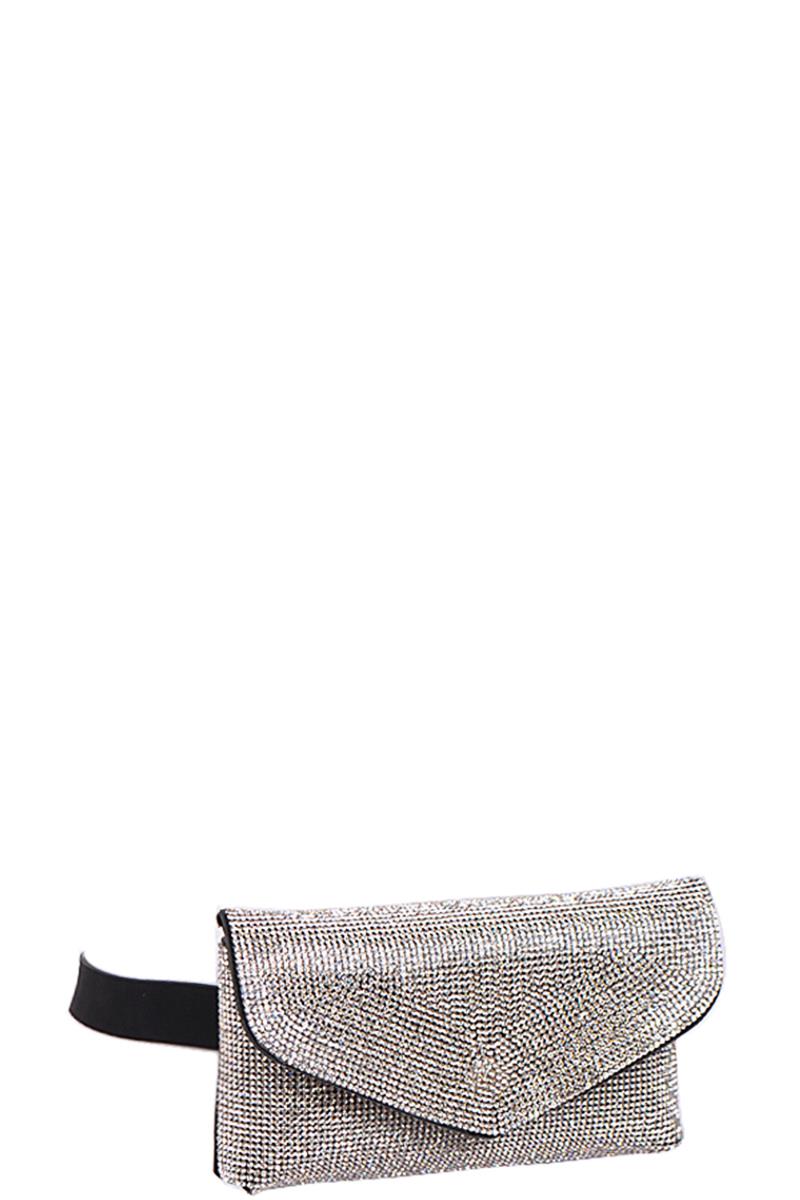 ALL OVER RHINESTONE ZIPPER FANNY PACK BAG