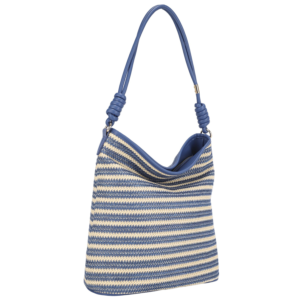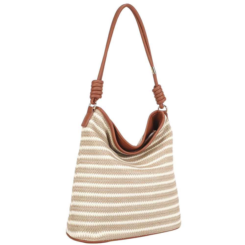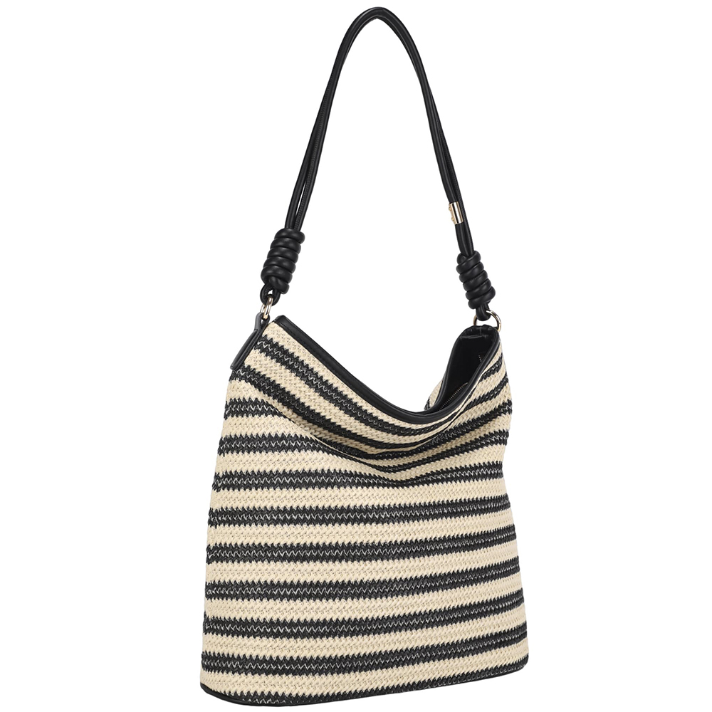 STRIPED STRAW DESIGN SHOULDER HOBO BAG