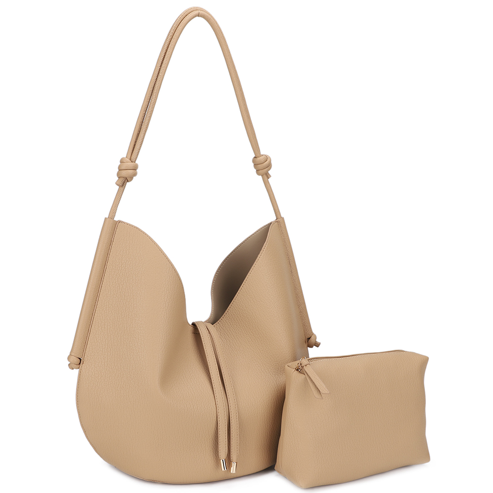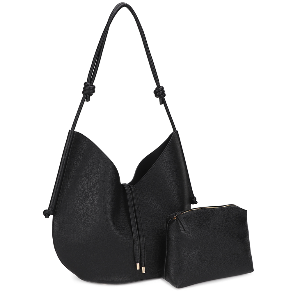 SOFT STRUCTURED HOBO SHOULDER BAG WITH MINI POUCH SET