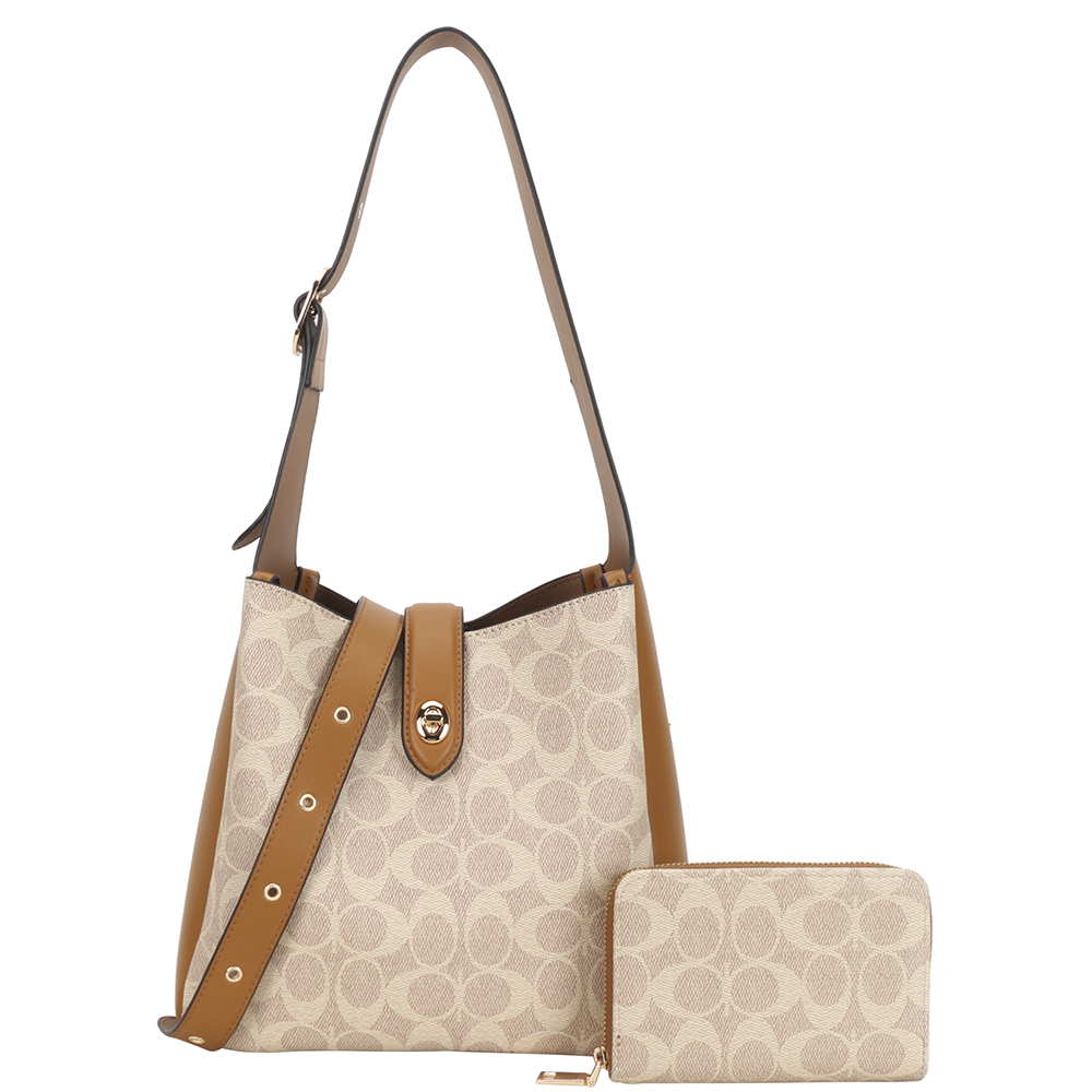 2IN1 OVAL PRINT SHOULDER HOBO BAG W WALLET SET
