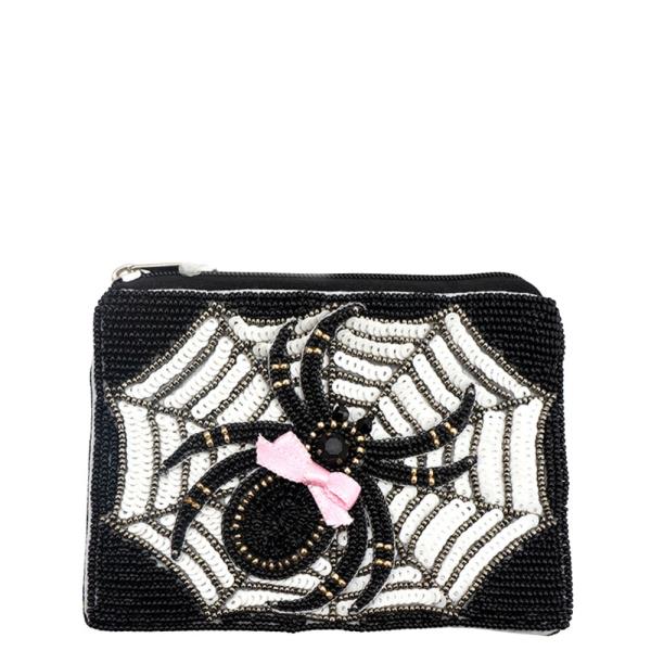 WRAPPING BOW BEADED ZIPPER COIN PURSE BAG POUCH