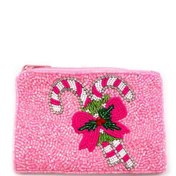 SEED BEADED HAPPY HOUR ZIPPER COIN PURSE BAG