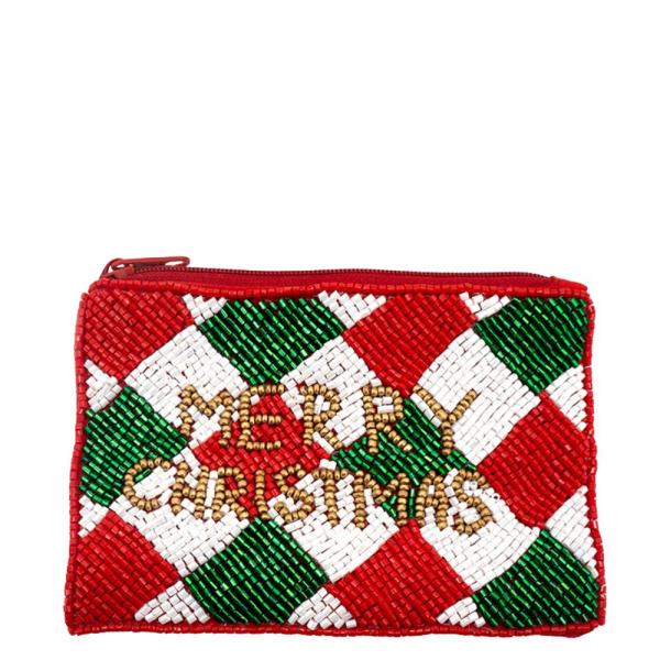 CHRISTMAS RELIGIOUS SEED BEAD COIN PURSE