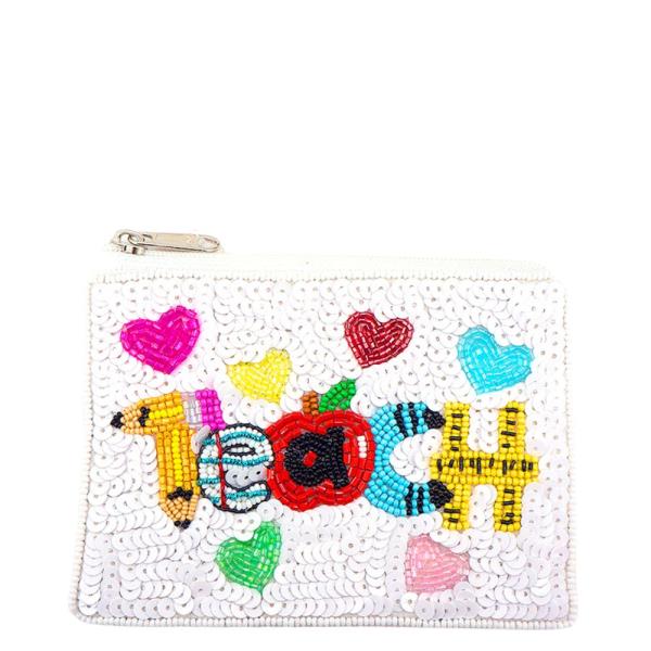 SEED BEADED SUPER TEACHER ZIP COIN PURSE BAG