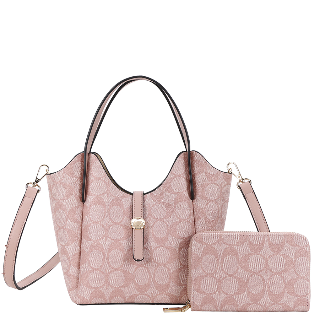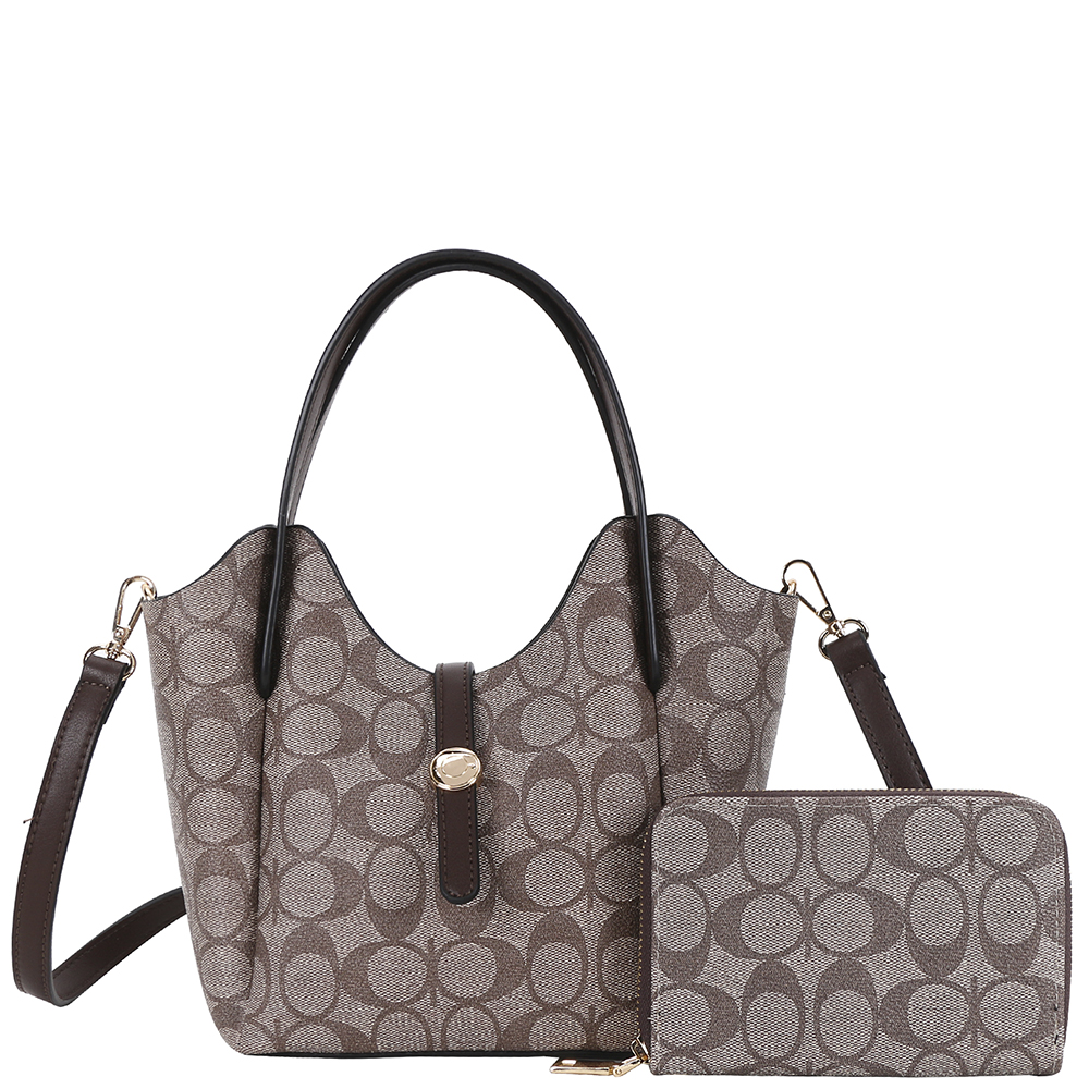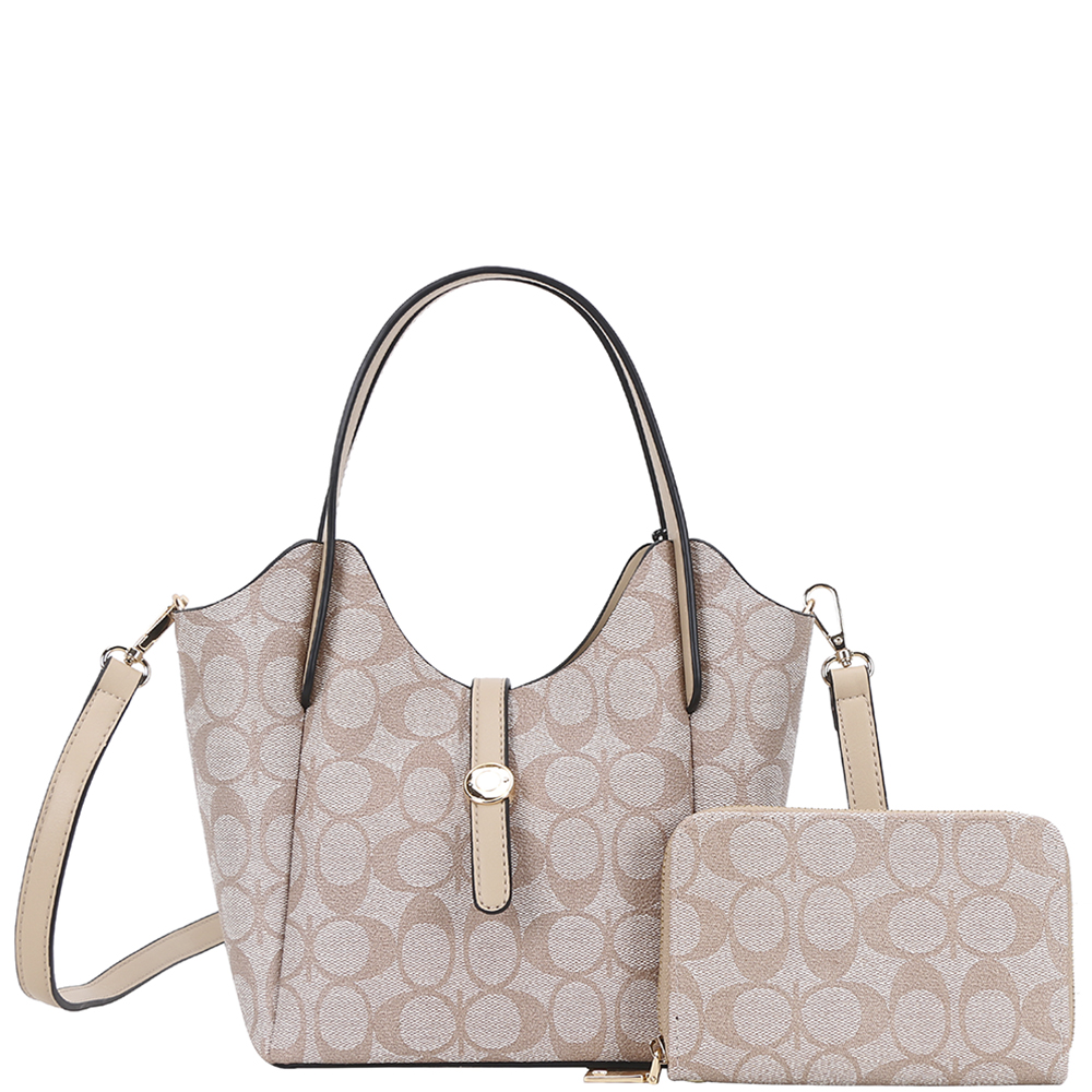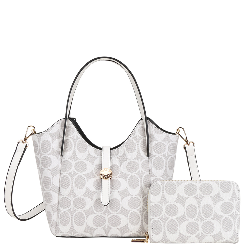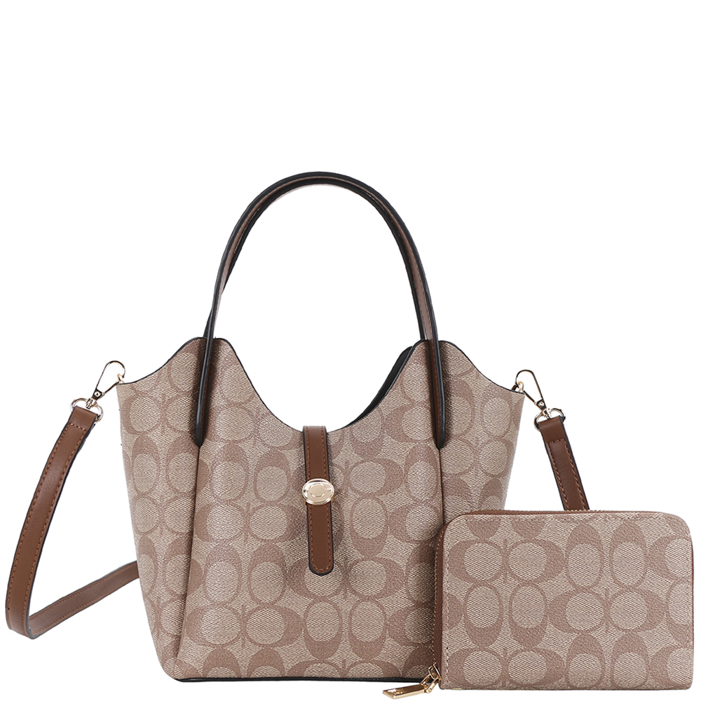 2IN1 OVAL PRINT HANDLE DESIGN SATCHEL W WALLET SET