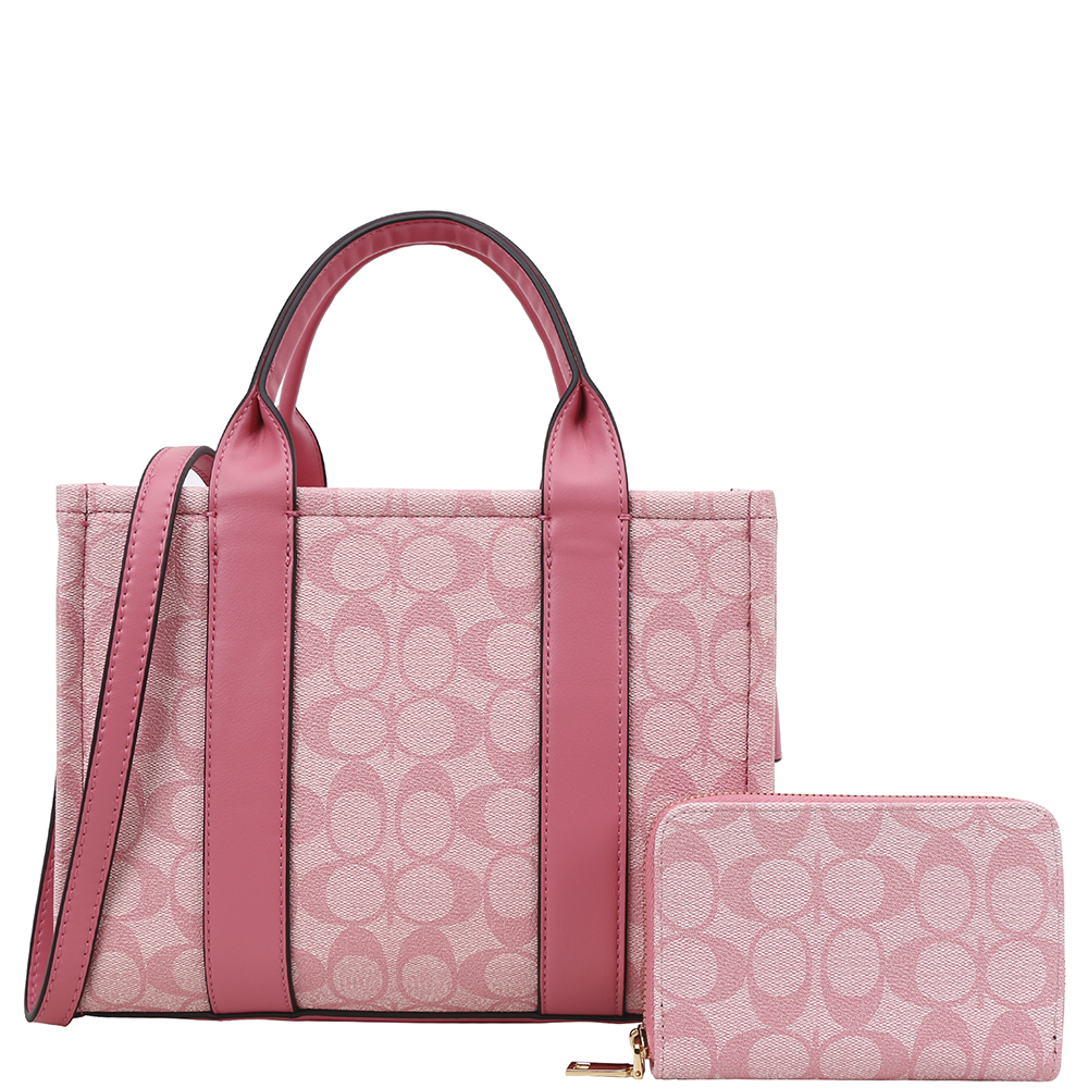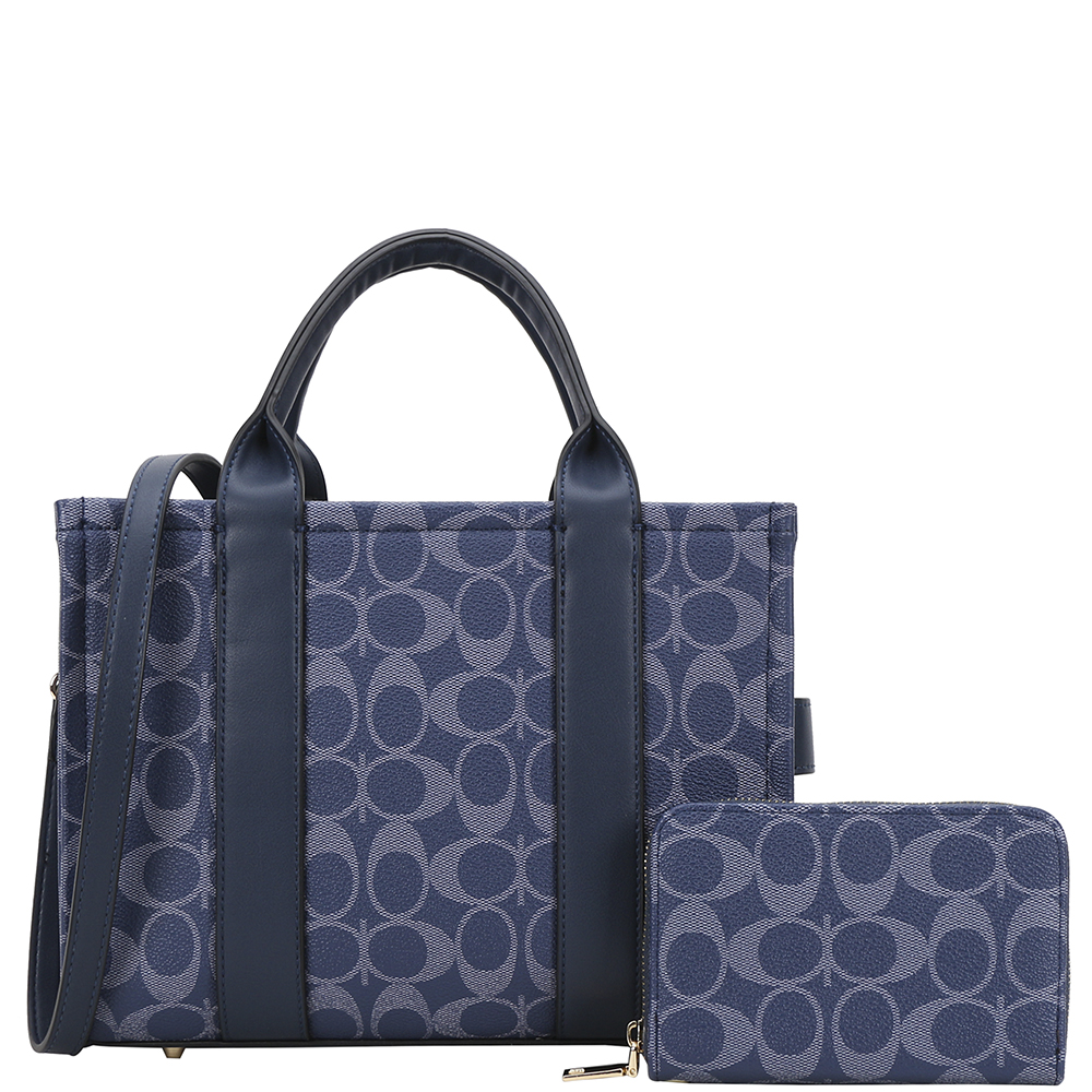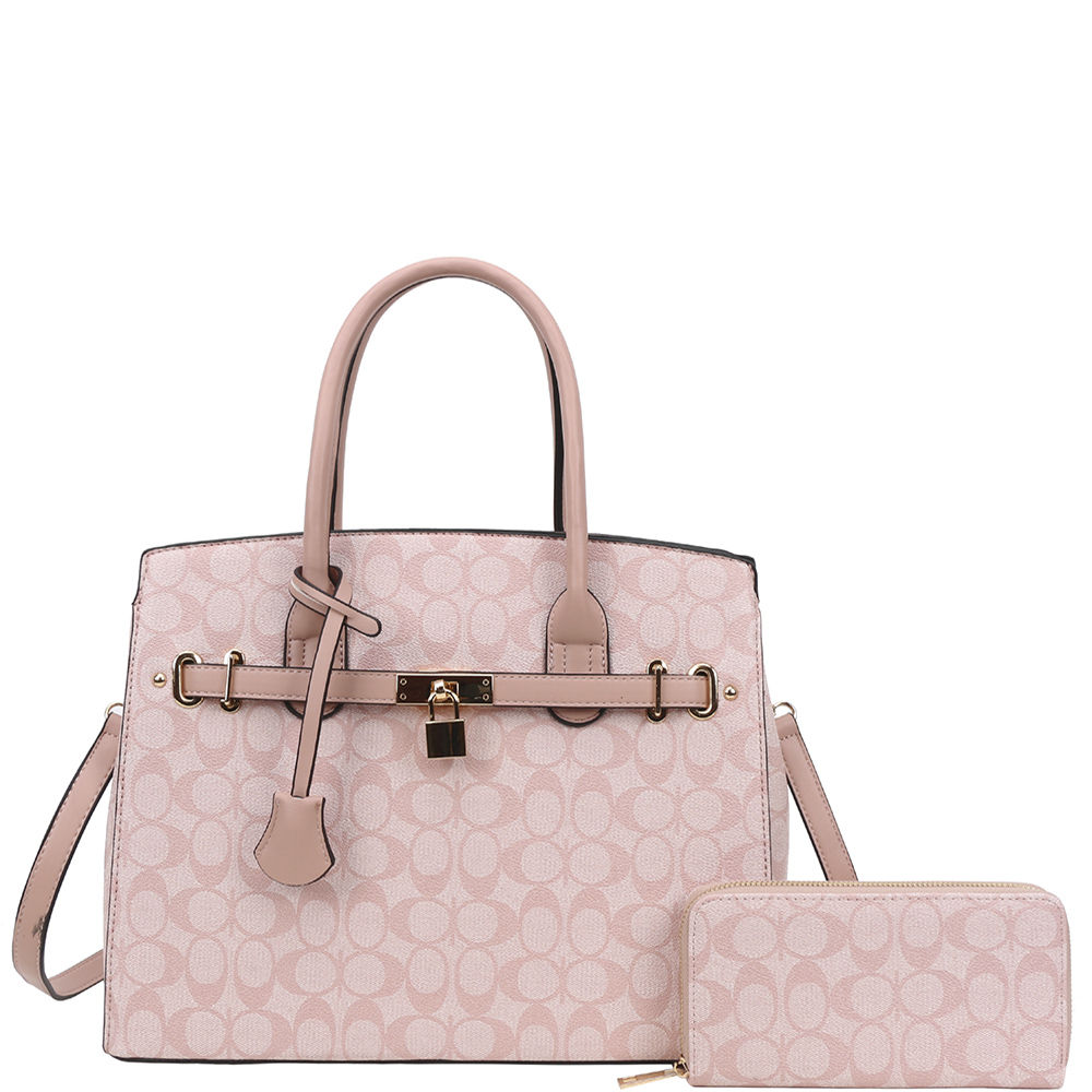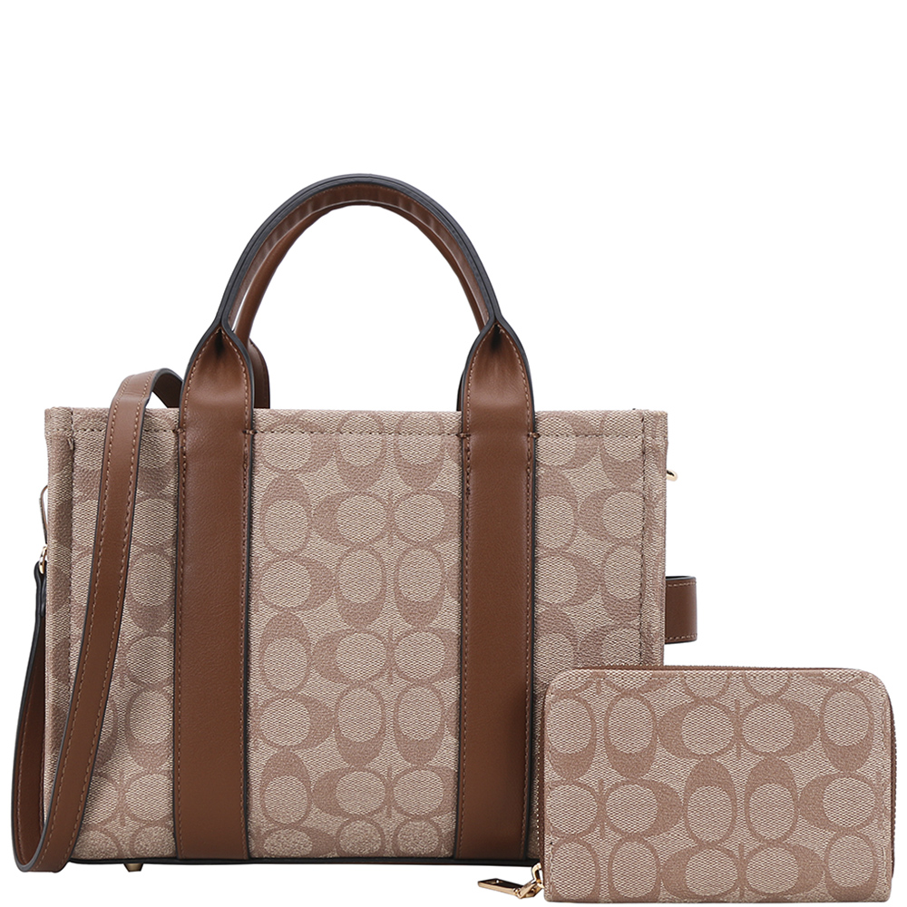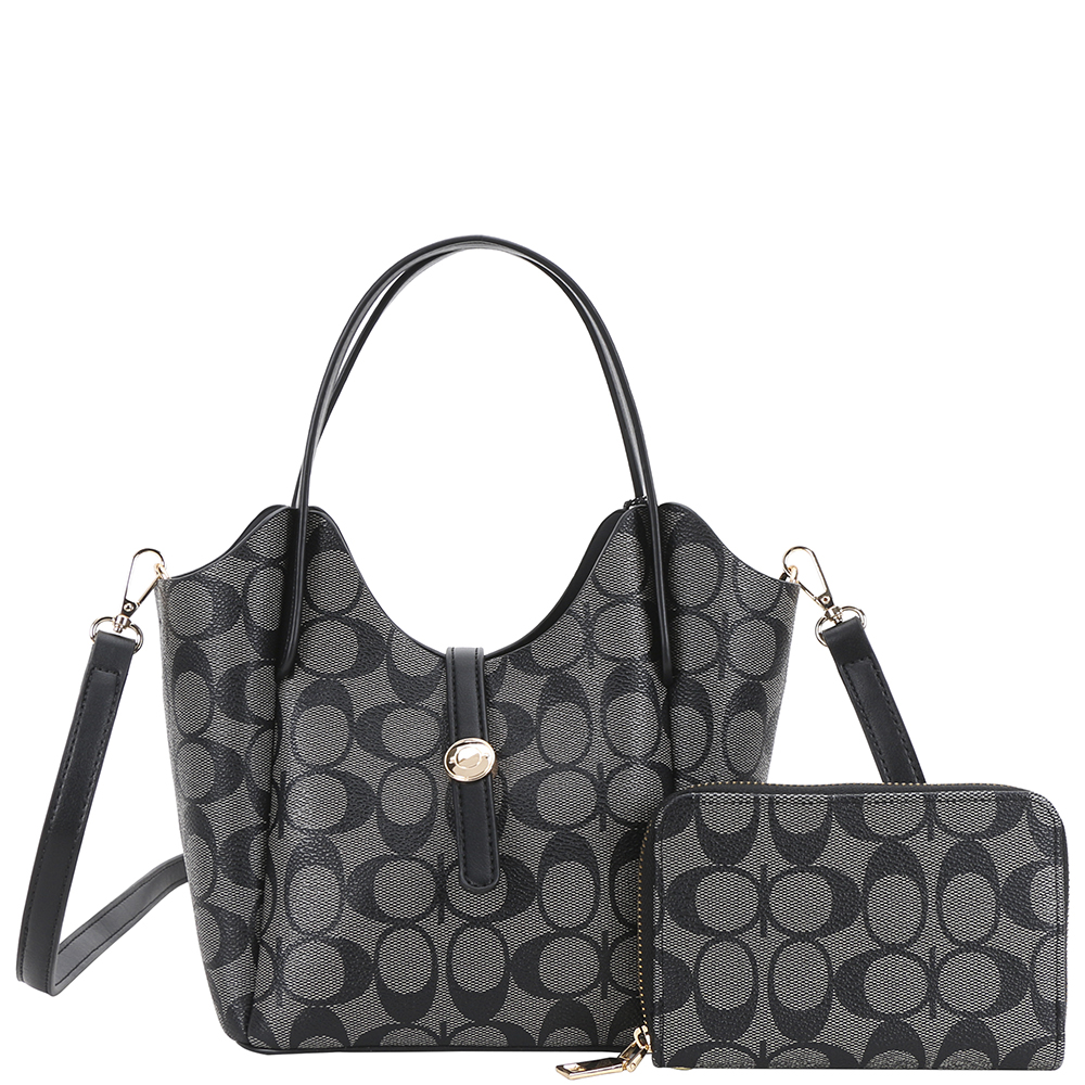 2IN1 OVAL PRINT HANDLE DESIGN SATCHEL W WALLET SET