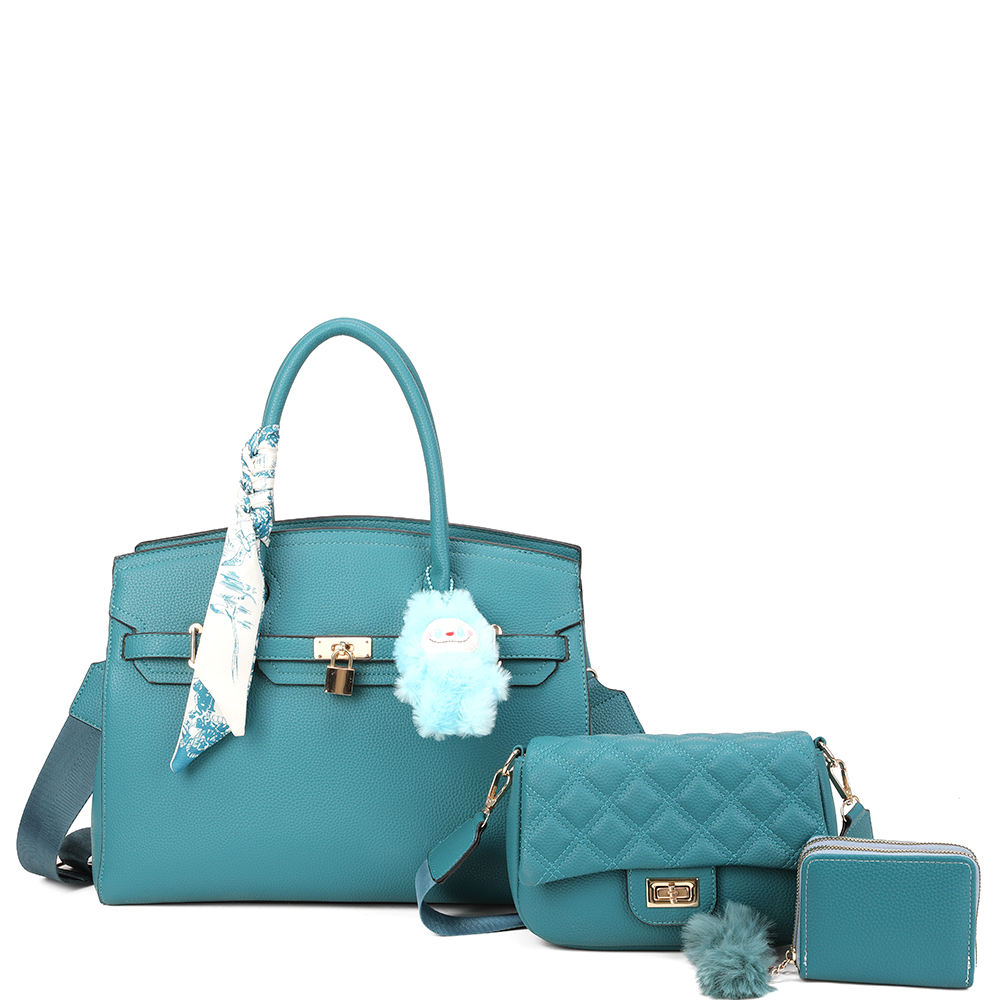 3IN1 QUILTED DESIGN SATCHEL W CROSSBODY AND WALLET SET