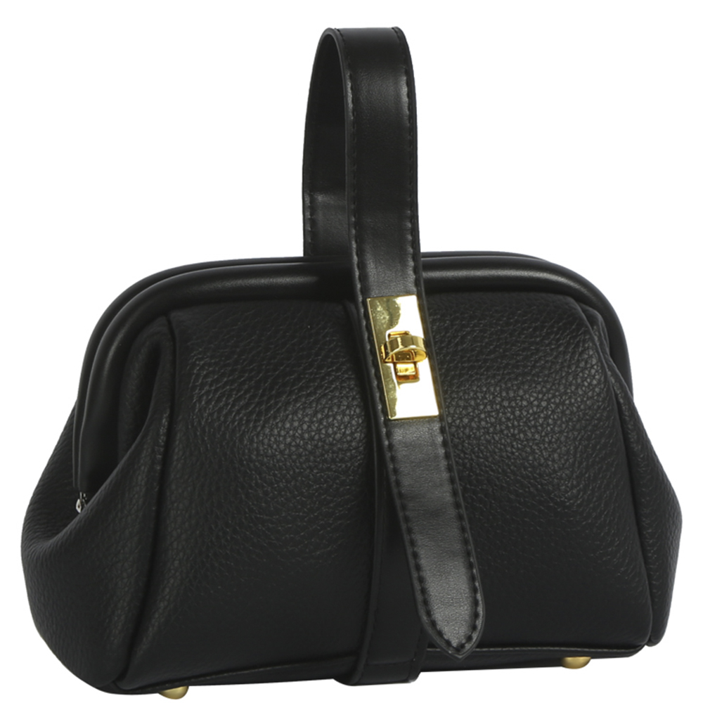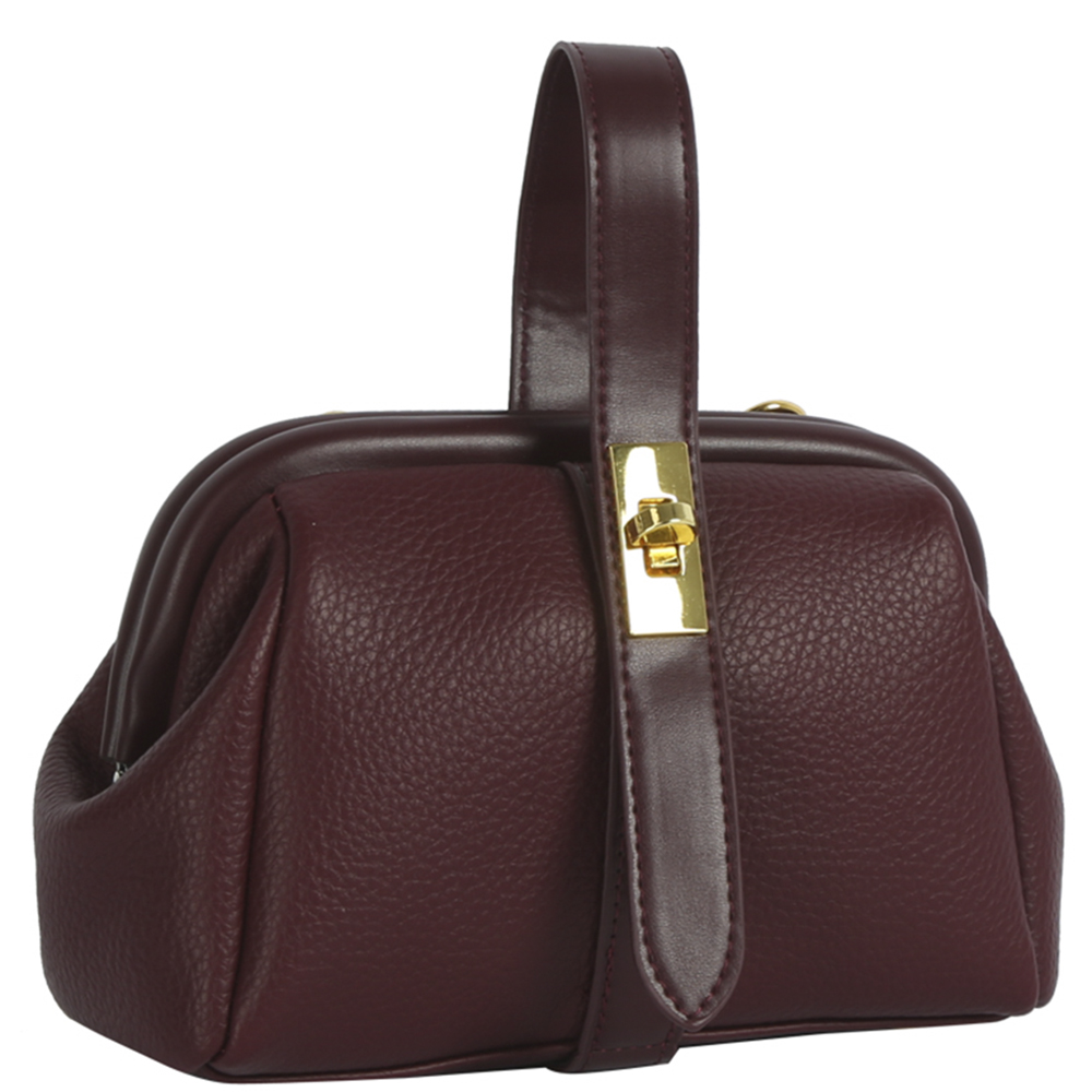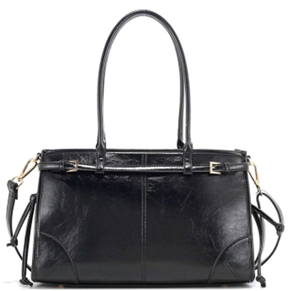 BUCKLE DESIGN TEXTURE HANDLE SATCHEL BAG W STRAP