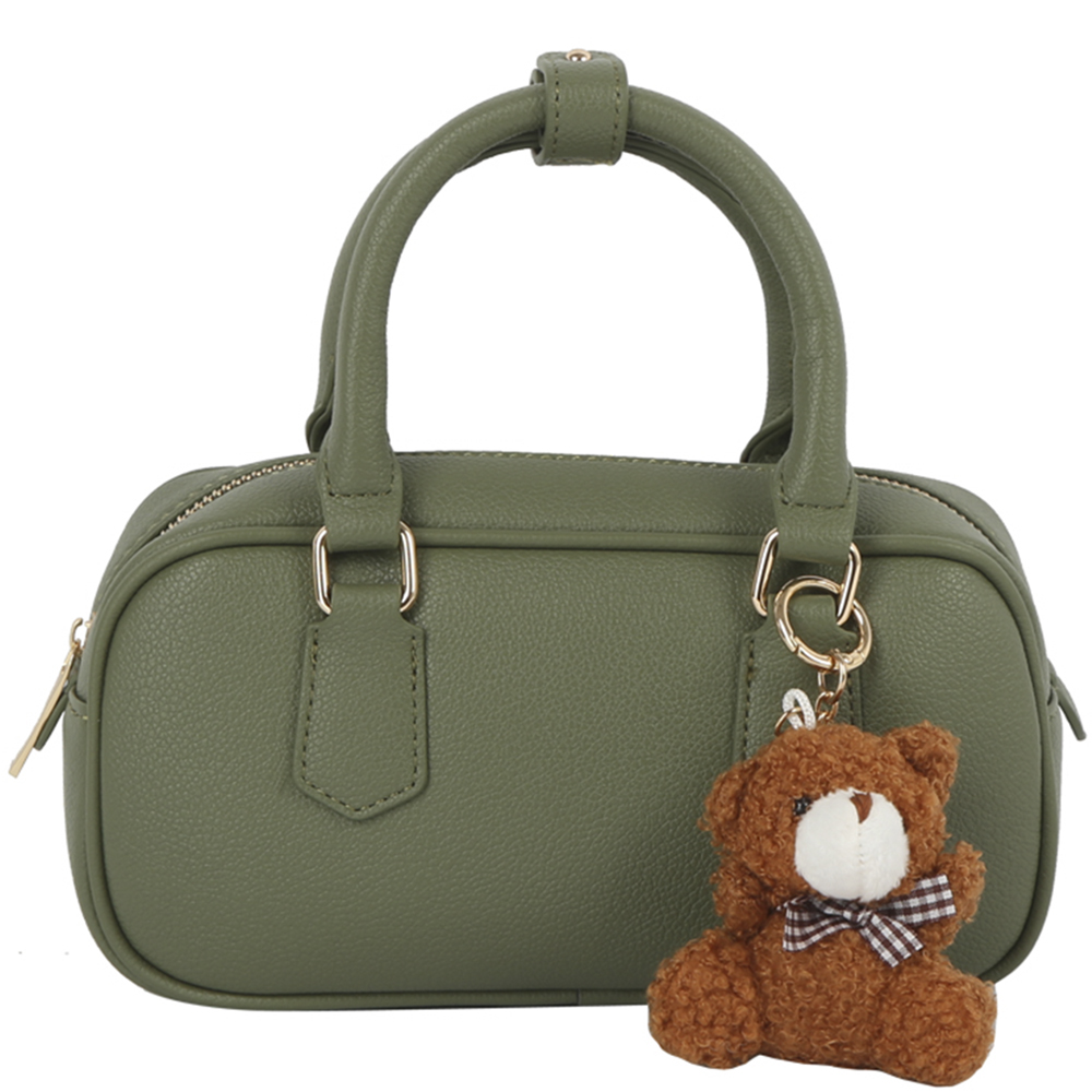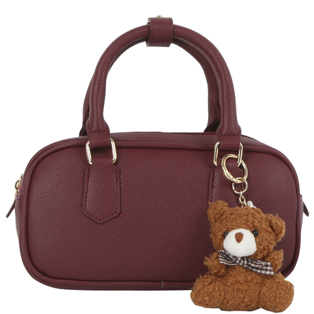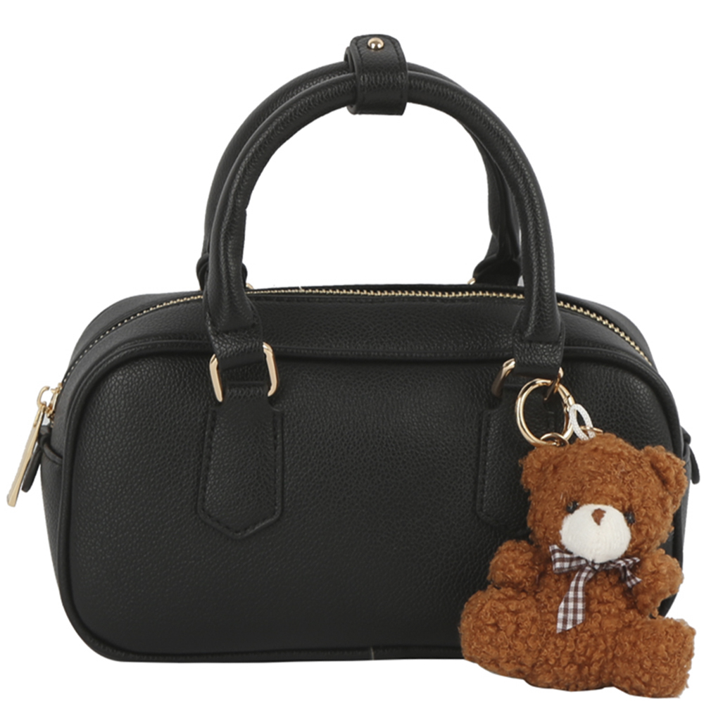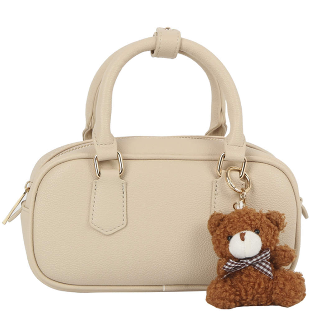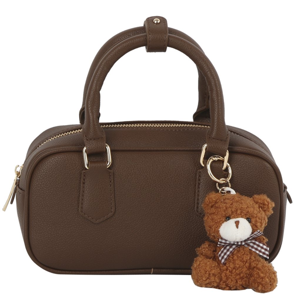 PLAIN TEXTURED HANDLE SATCHEL W DOLL KEYCHAIN