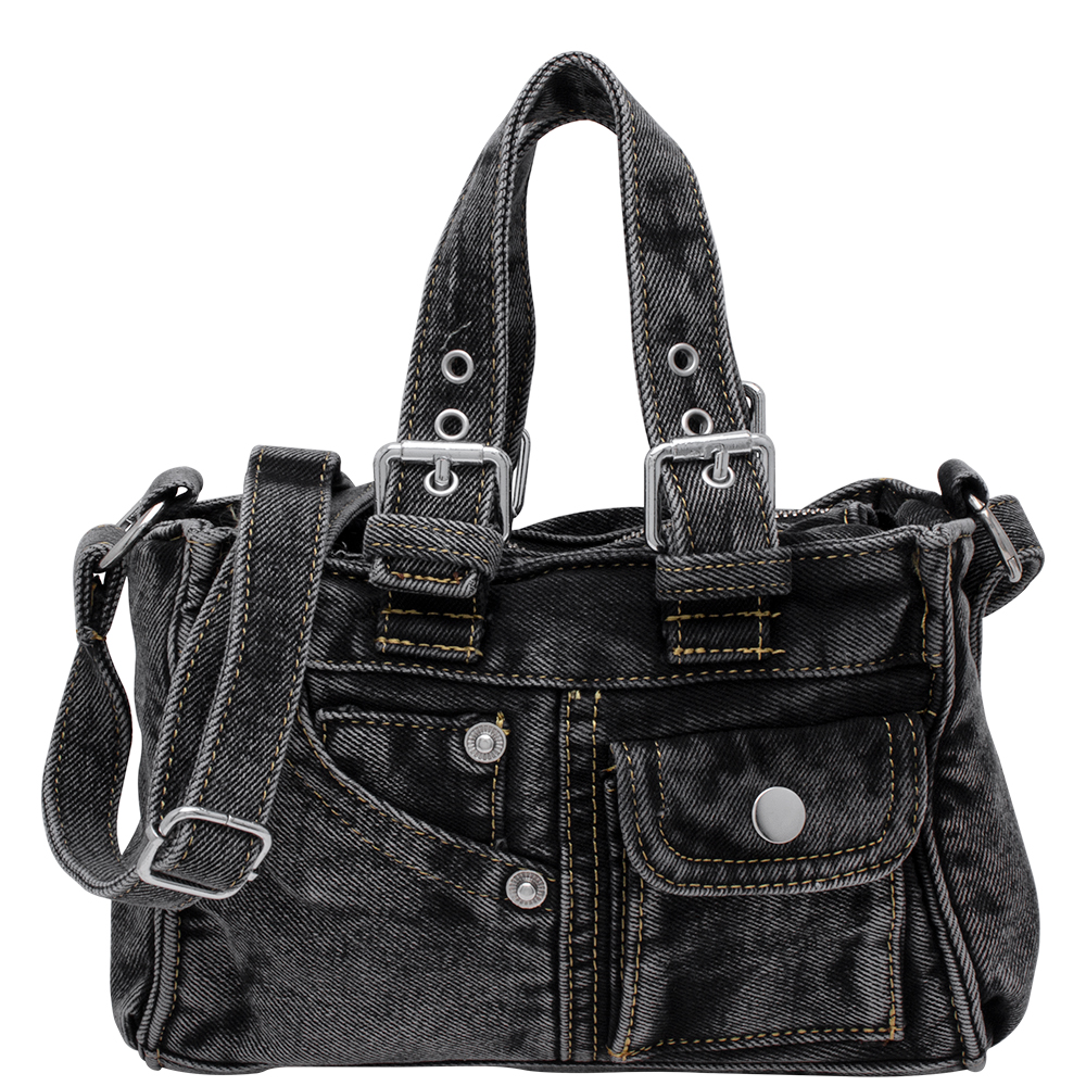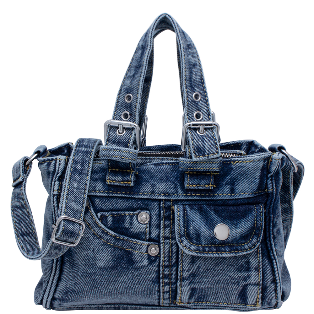 DENIM DESIGN TEXTURE SATCHEL BAG