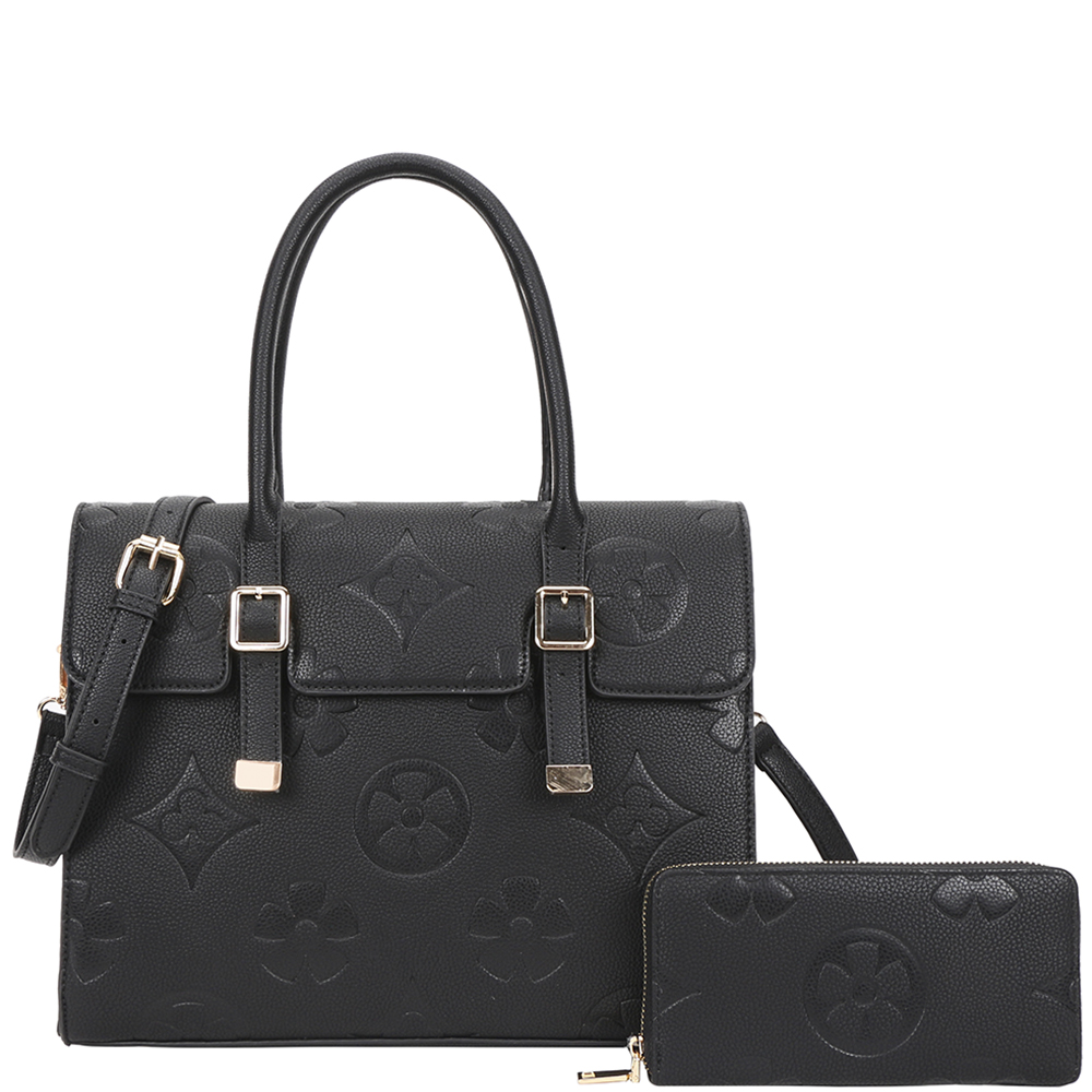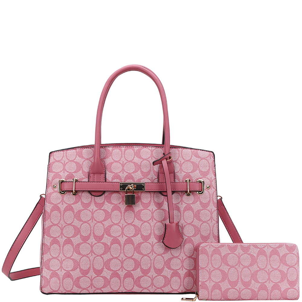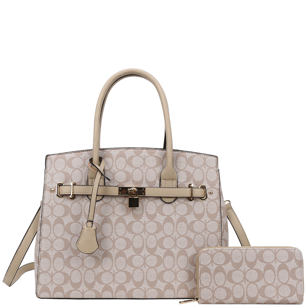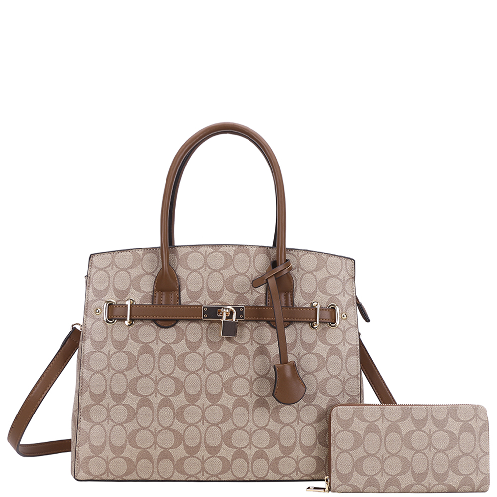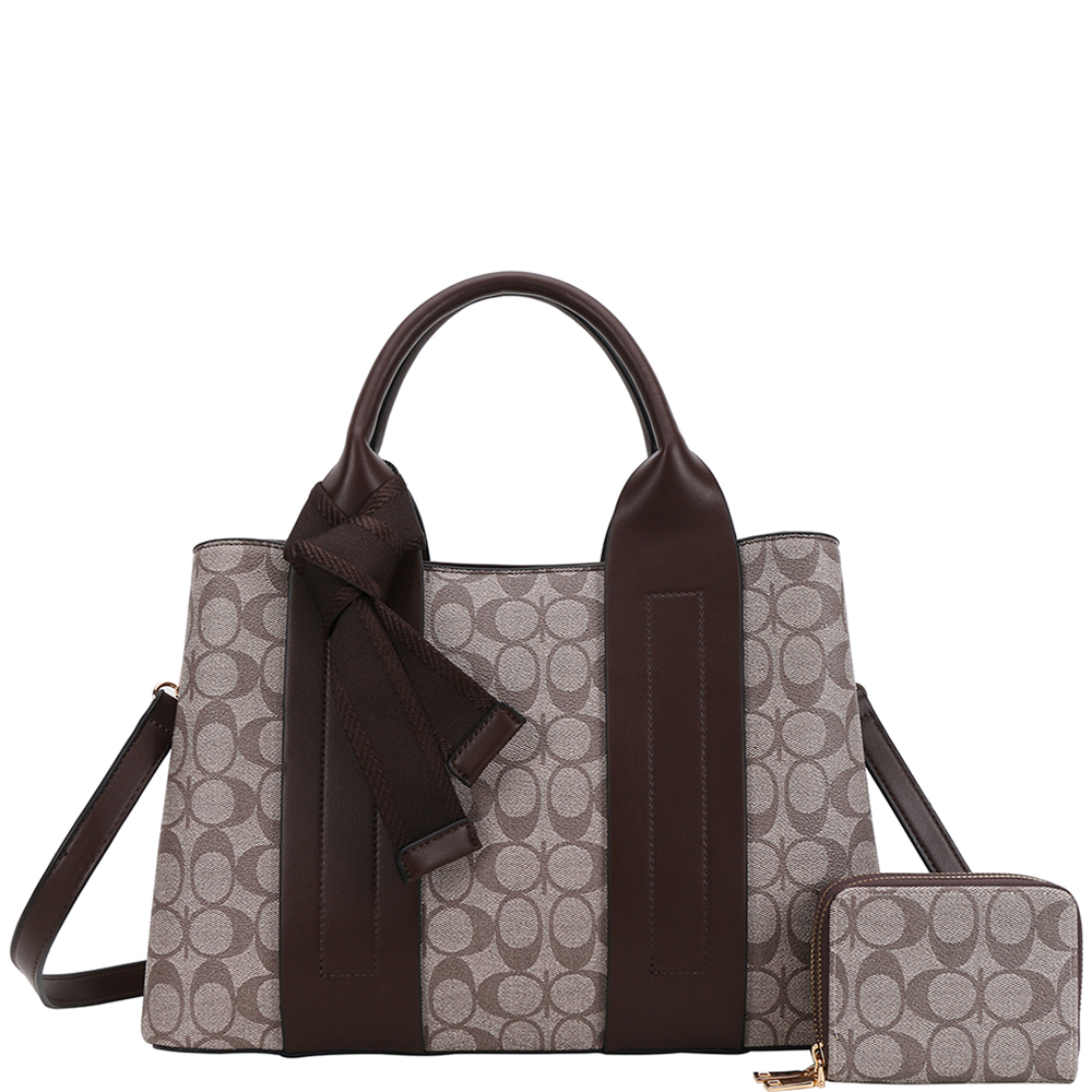 2IN1 MONOGRAM DESIGN TEXTURE HANDLE SATCHEL W WALLET SET