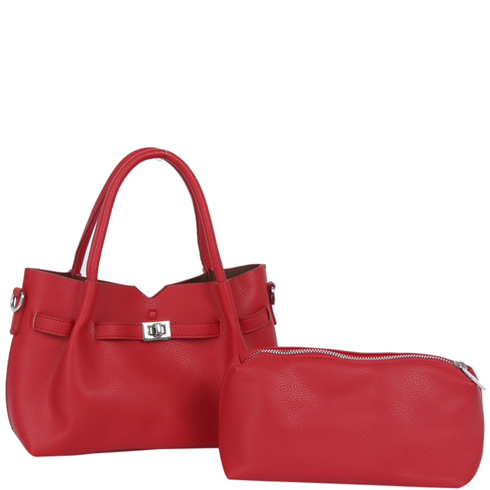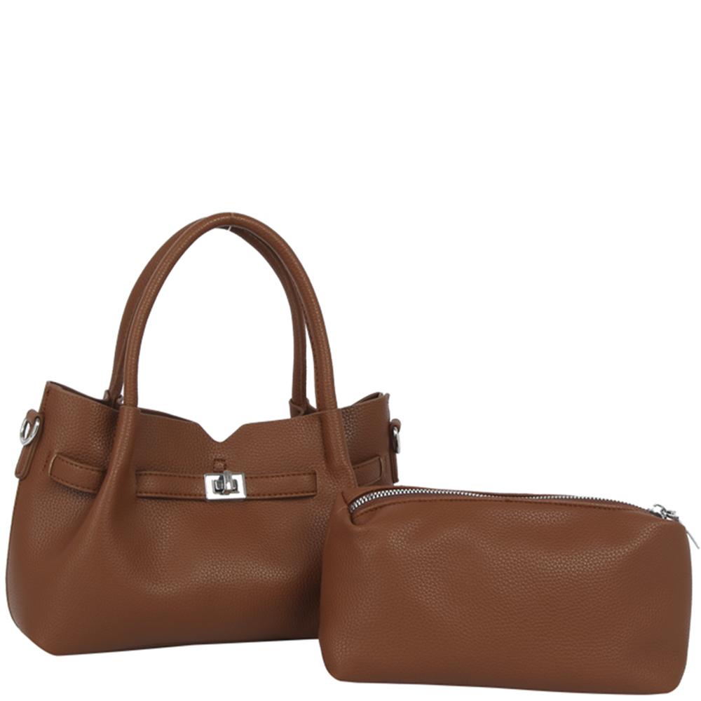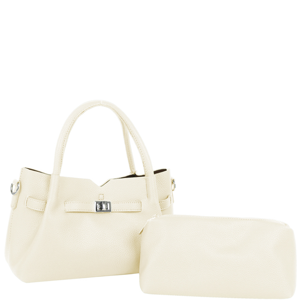 2IN1 COLOR TEXTURED SATCHEL BAG W POUCH SET