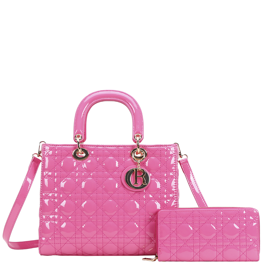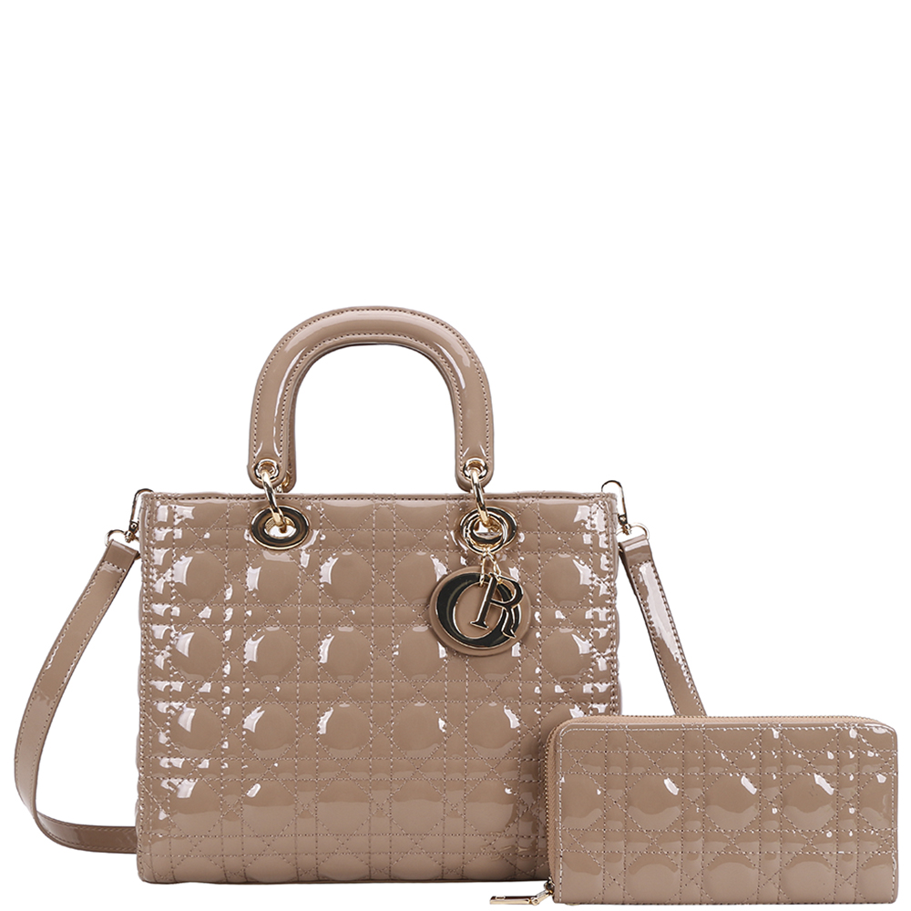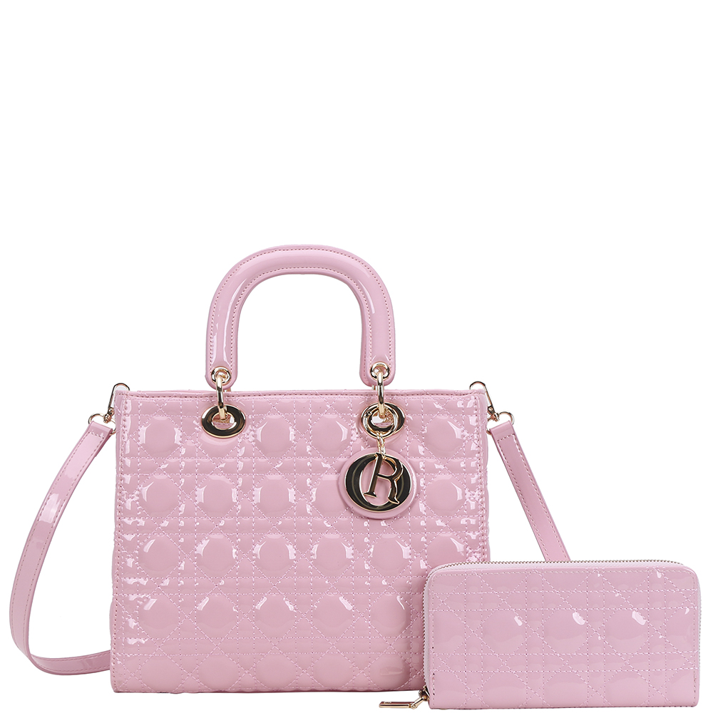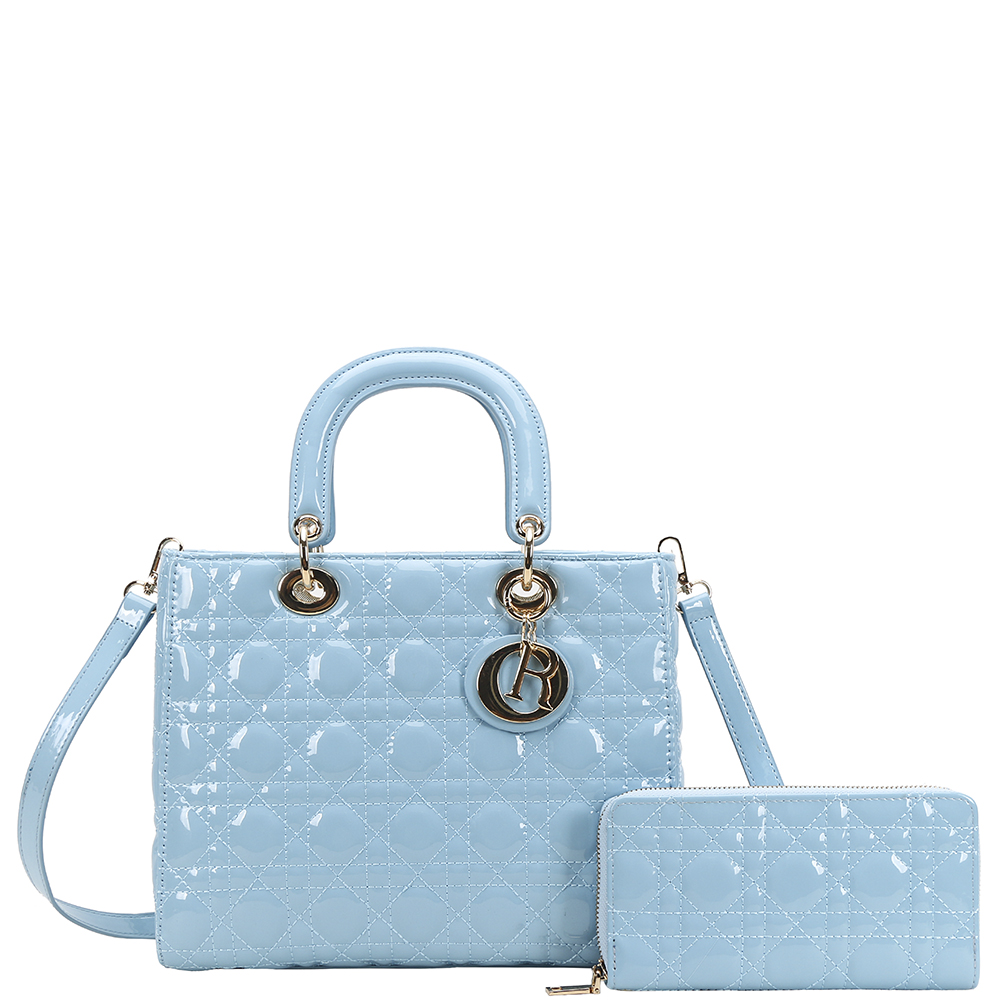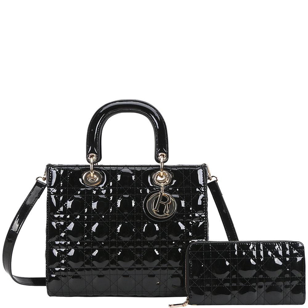 2IN1 QUILTED GLOSSY DESIGN SATCHEL BAG W WALLET SET